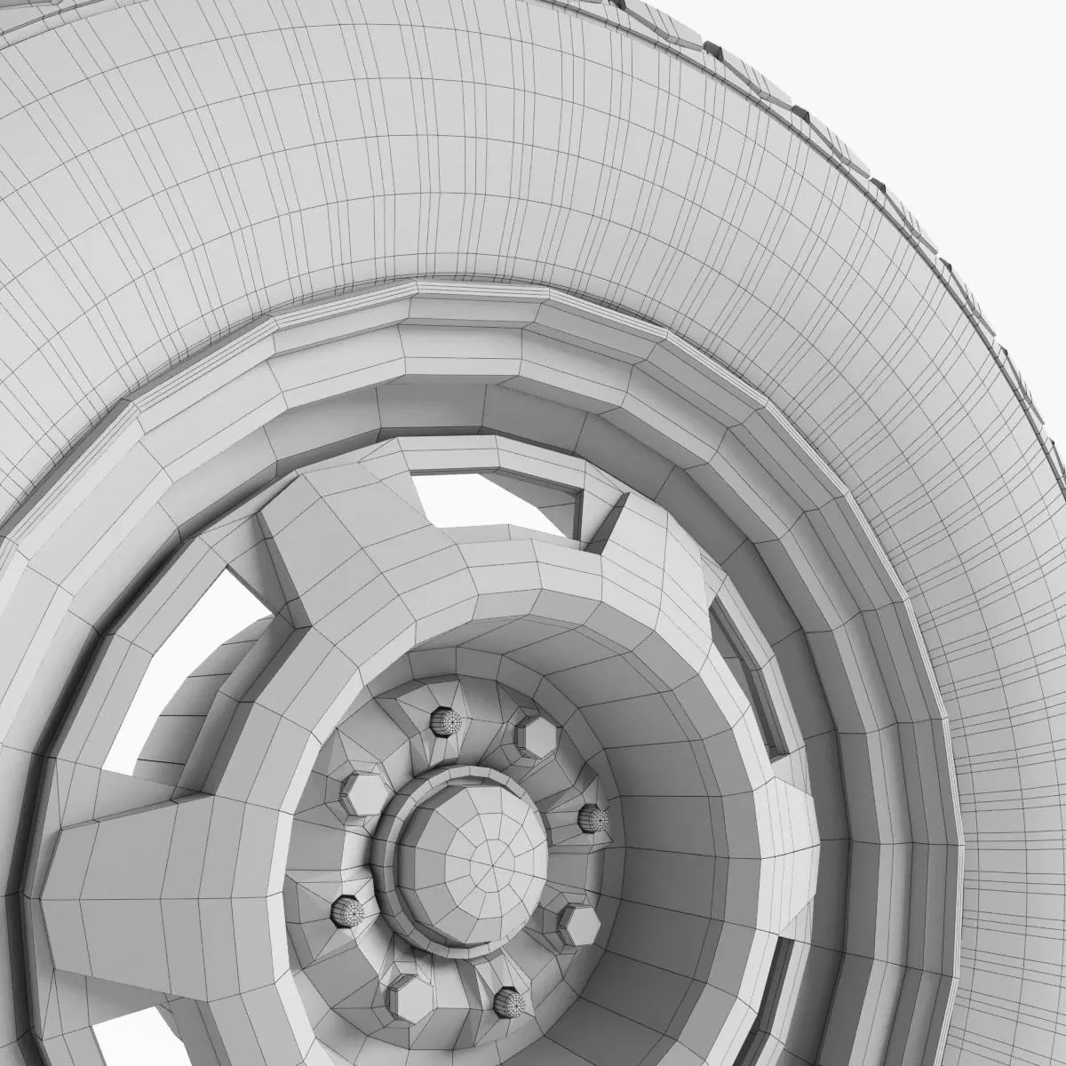 The Rim model for smoothing, type of smooth is NURMS, still in history(set to level 2). Detailization of tires and bolts can not be controlled.