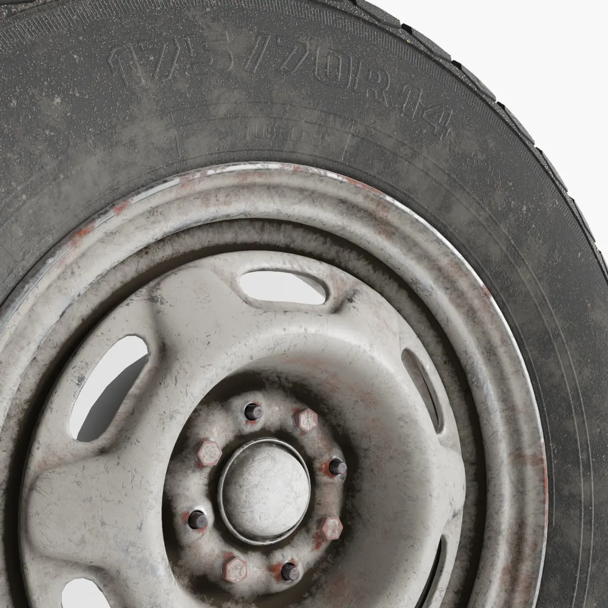 Original wheel and tire of vintage soviet VAZ 2108 automobile. The rim is 5,5x14 inches.