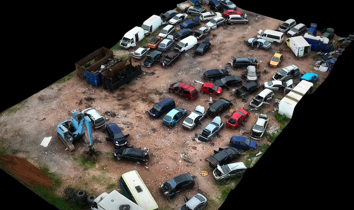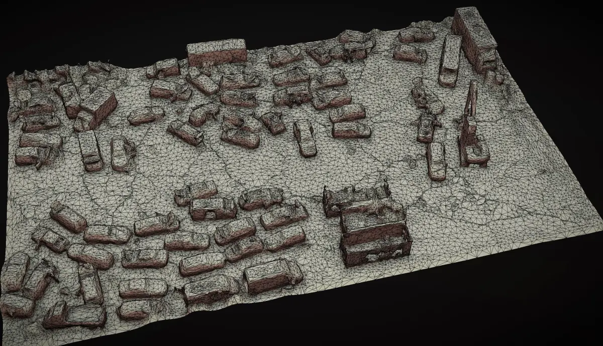 car wreckage abandoned area terrain dronescan Low-poly 3D model