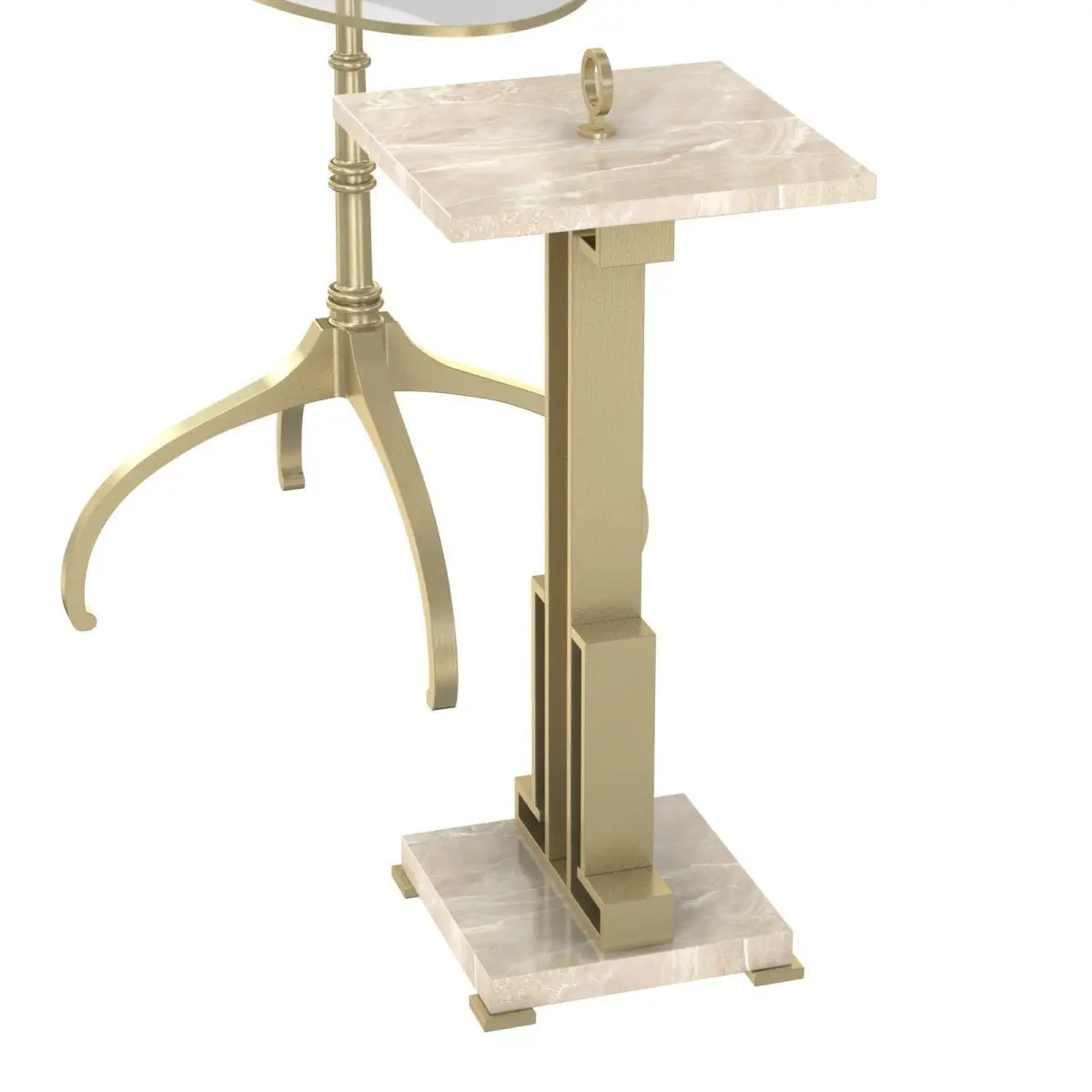 WO STONEDCOLLECTION: CARACOLE CLASSICDimensions In Inches: 11W x 11D x 24HDimensions In Centimeters: 27.94W x 27.94D x 60.96HWe love the look of this unforgettably stylish side table. Perfectly proportioned, it offers double the marble and double the style. Finished in plated Champagne Gold, it boasts a top and base crafted of elegant marble. Designed for beauty and utility, it’s a definite charmer and precisely crafted for limitless elegance.FEATURES:Metal frame finished in plated Champagne Gold.Polished marble top and base.