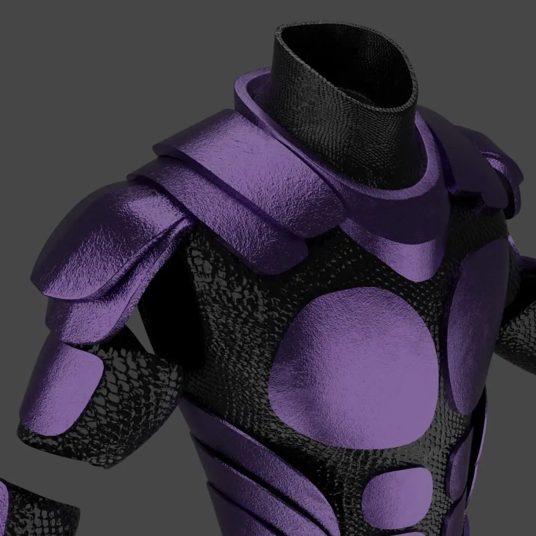 This is Carapace Armor. Carapace armor includes two types of protection at once, the carapace itself, it has a purple color, is made of high-strength and at the same time light alloy, and also from scales, the scales are made of carbon fiber with numerous titanium filaments, due to which such scales are elastic and very durable at the same time. This type is advanced, since it is very light and durable, but such armor, firstly, is expensive, and secondly, its manufacture is very difficult due to the production of special scales and alloys. The mannequin is for demonstration purposes and is not included in the archive with the model.Link on used mannequin for demonstration https://www.cgtrader.com/free-3d-print-models/miniatures/figurines/anatomy-man-printable