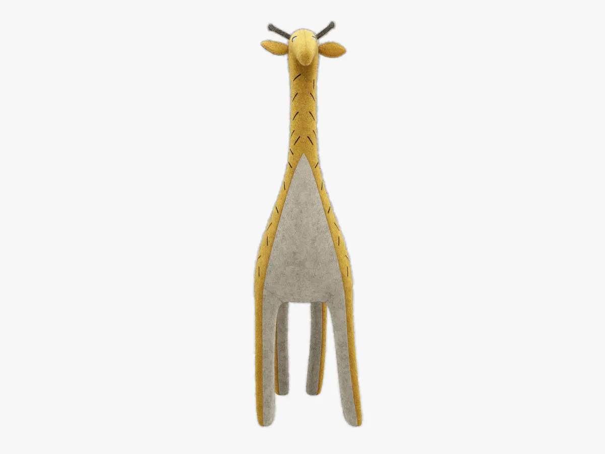 Photorealistic, High Detailed and precise 3D model of KUBO & ZIFFA, the South African Giraffe and the Nubian Giraffe, Handmade stuffed animal with burel, by CARAPAU. This model is optimized for HD rendering and is well-suited for various application, including real-time platforms.