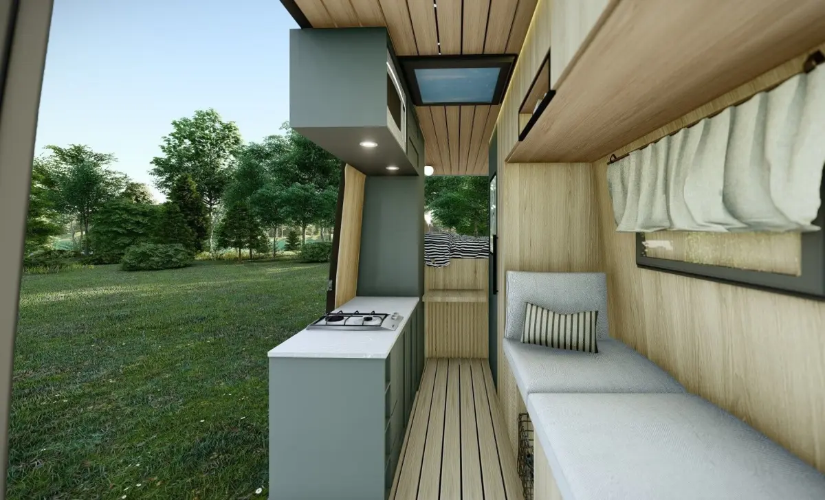 Here is a caravan design that I created for my customer. It has all the interior parts. It is a sketchup model. You can add your materials and customize it. Hope you like it!