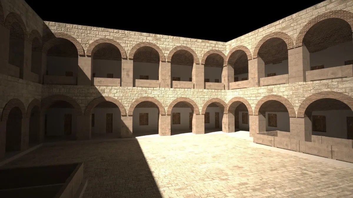 caravanserai room in middle of building 3D model