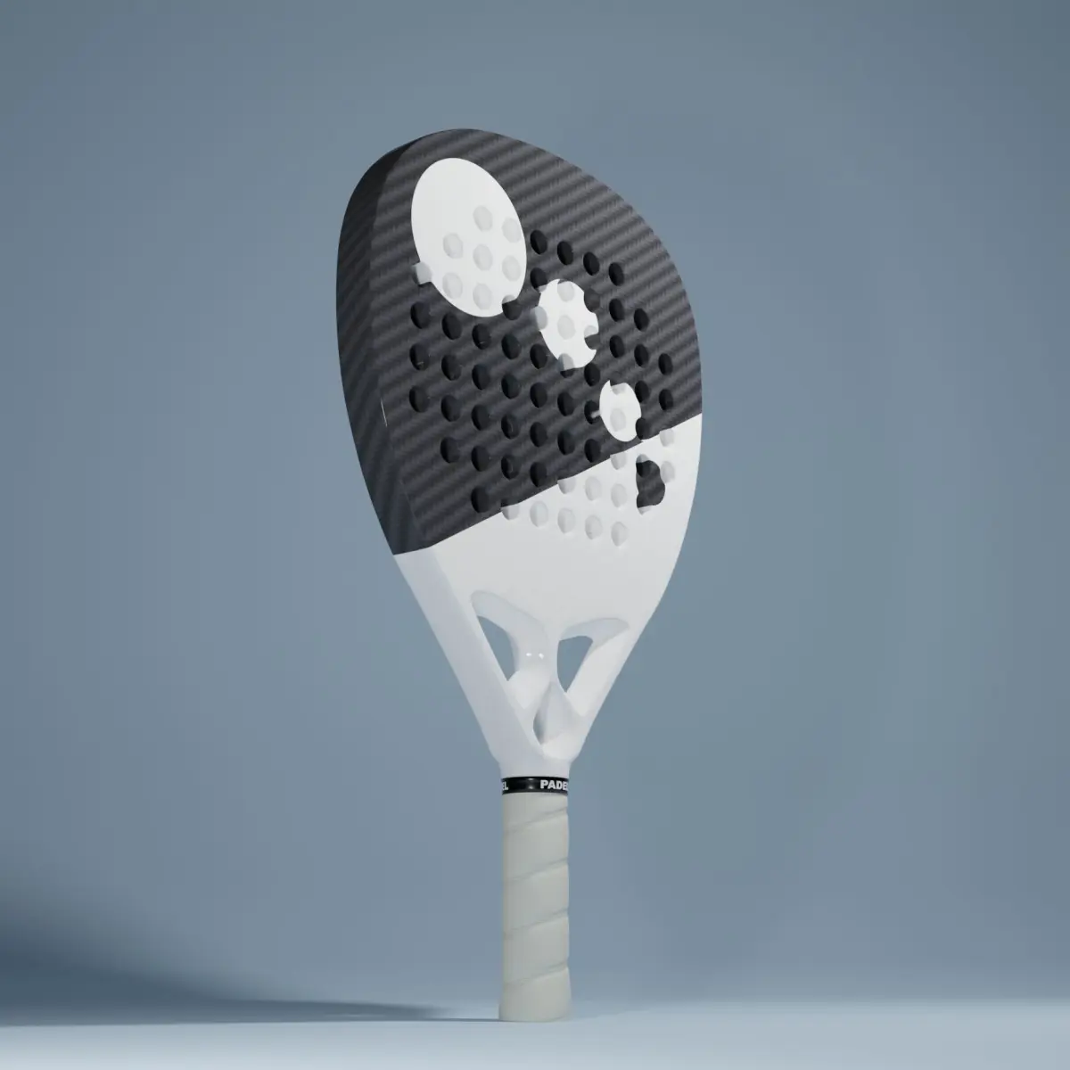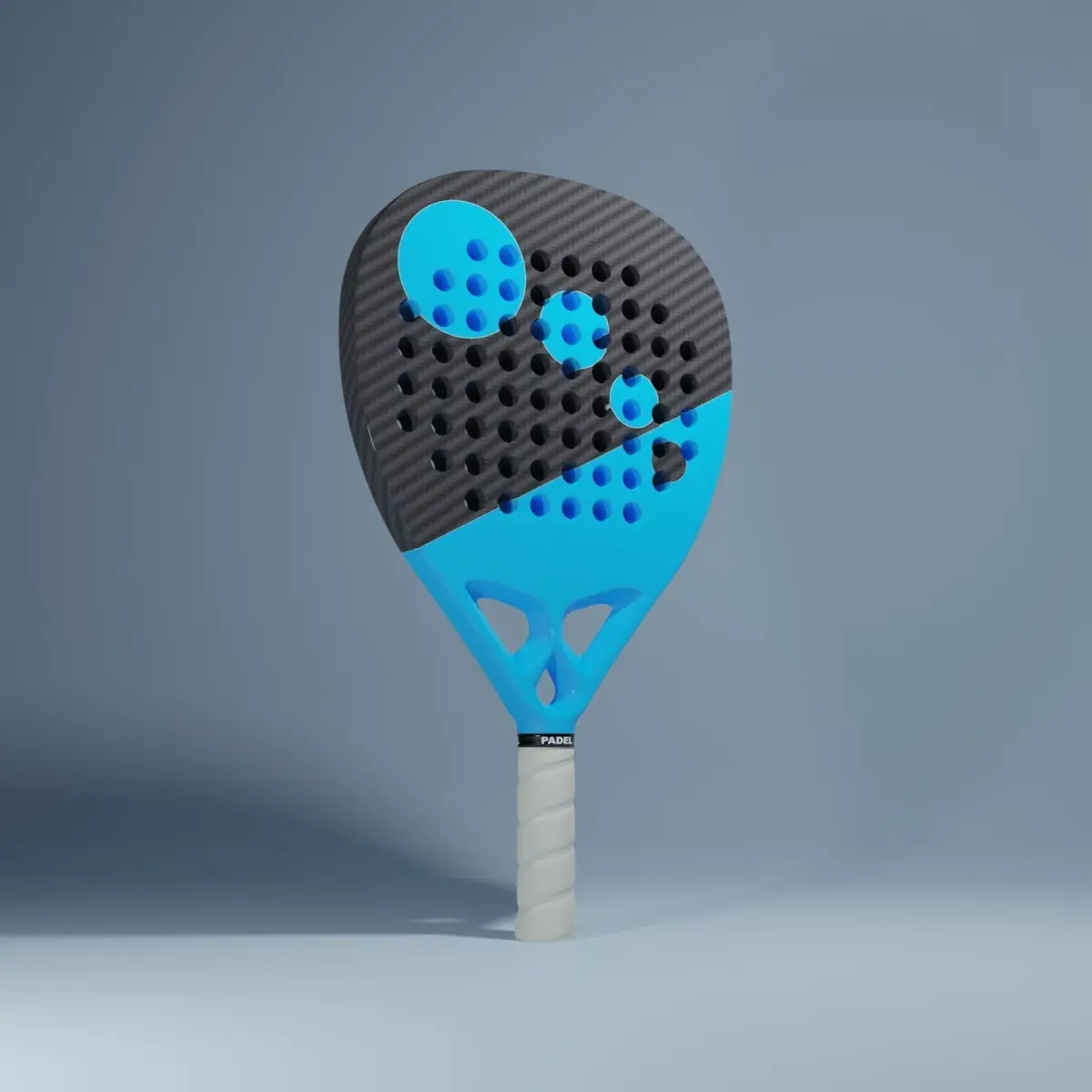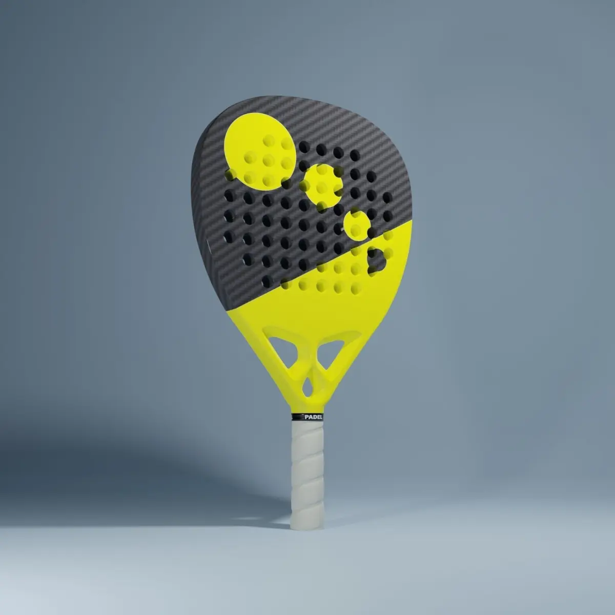 Carbon fiber padel racket model made with blender 3 and exported to several other file formats such as obj, collada and others. the model is simple and light and provided with all the textures of the materials. You will find the model in five different colors: white, cyan, red, green and yellow.