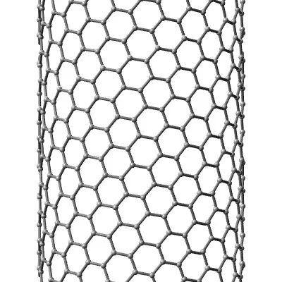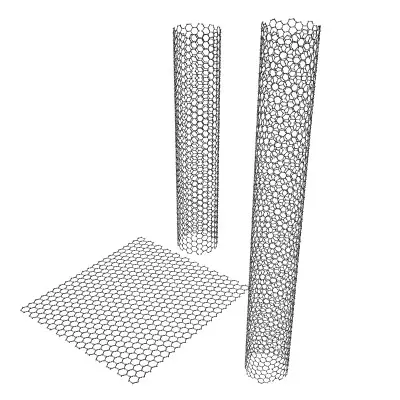 Carbon Nanotubes. Three objects; straight nanotube, twisted nanotube, and flat sheet.