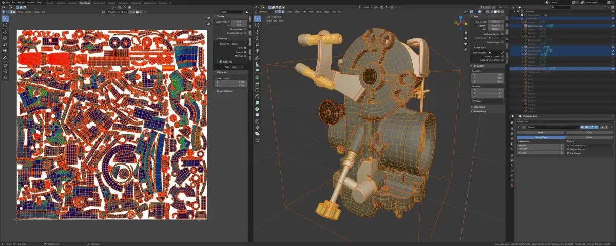 - Scene is organize in collections, to manipulate the model use the locator. Individual parts have their transform channels locked to avoid unintended transformations.