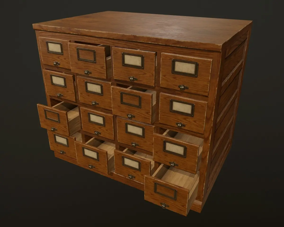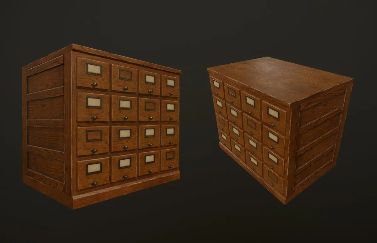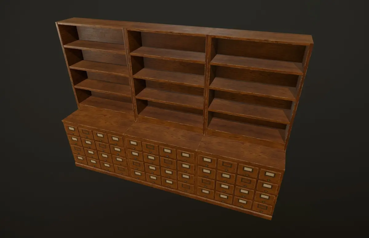 Card File Cabinet with Shelf it's a lowpoly game ready models with unwrapped UVs, PBR textures, ready to use in any game engines.