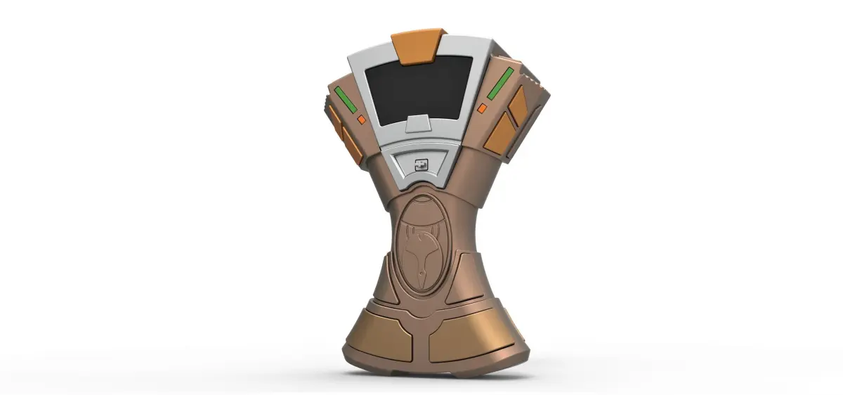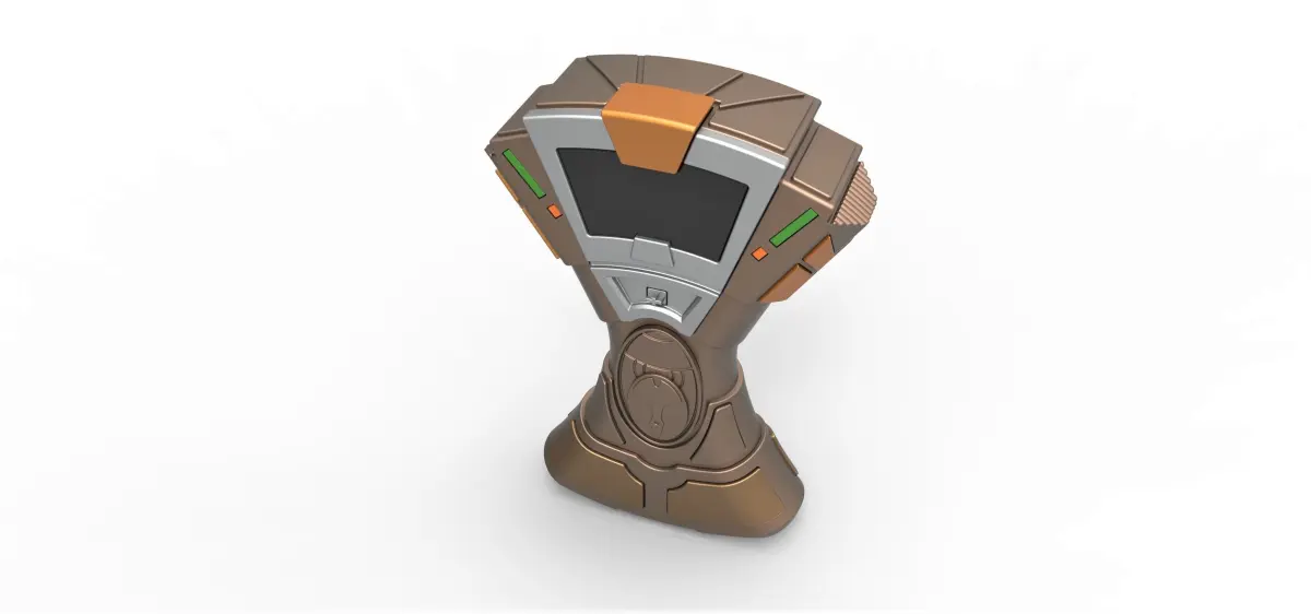 Model consists of parts: body bottom part, body middle part, body upper part, bottom front left insert, bottom front right insert, bottom rear left insert, bottom rear right insert, emblem, front plate, green indicator 1-2, joystick, left plate insert 1-2, middle front left insert, middle front right insert, orange indicator 1-2, right plate insert 1-2, screen, side bar insert 1-2, top insert.
