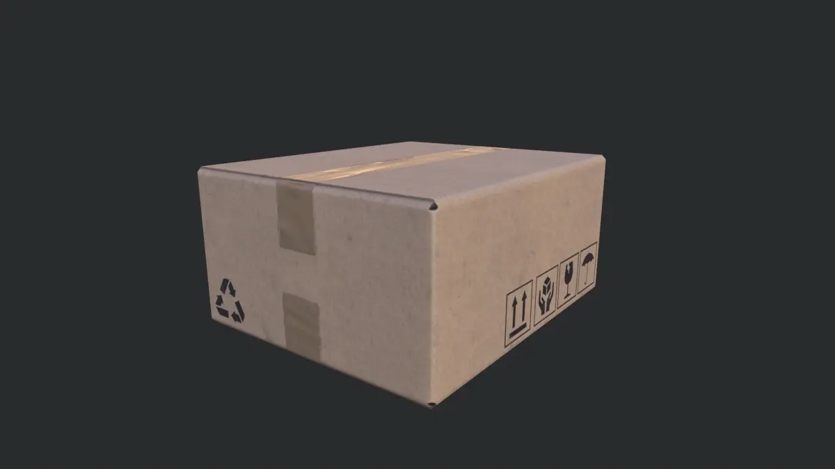 Cardboard Box 03 - low-poly, PBR model ready for games or rendering.