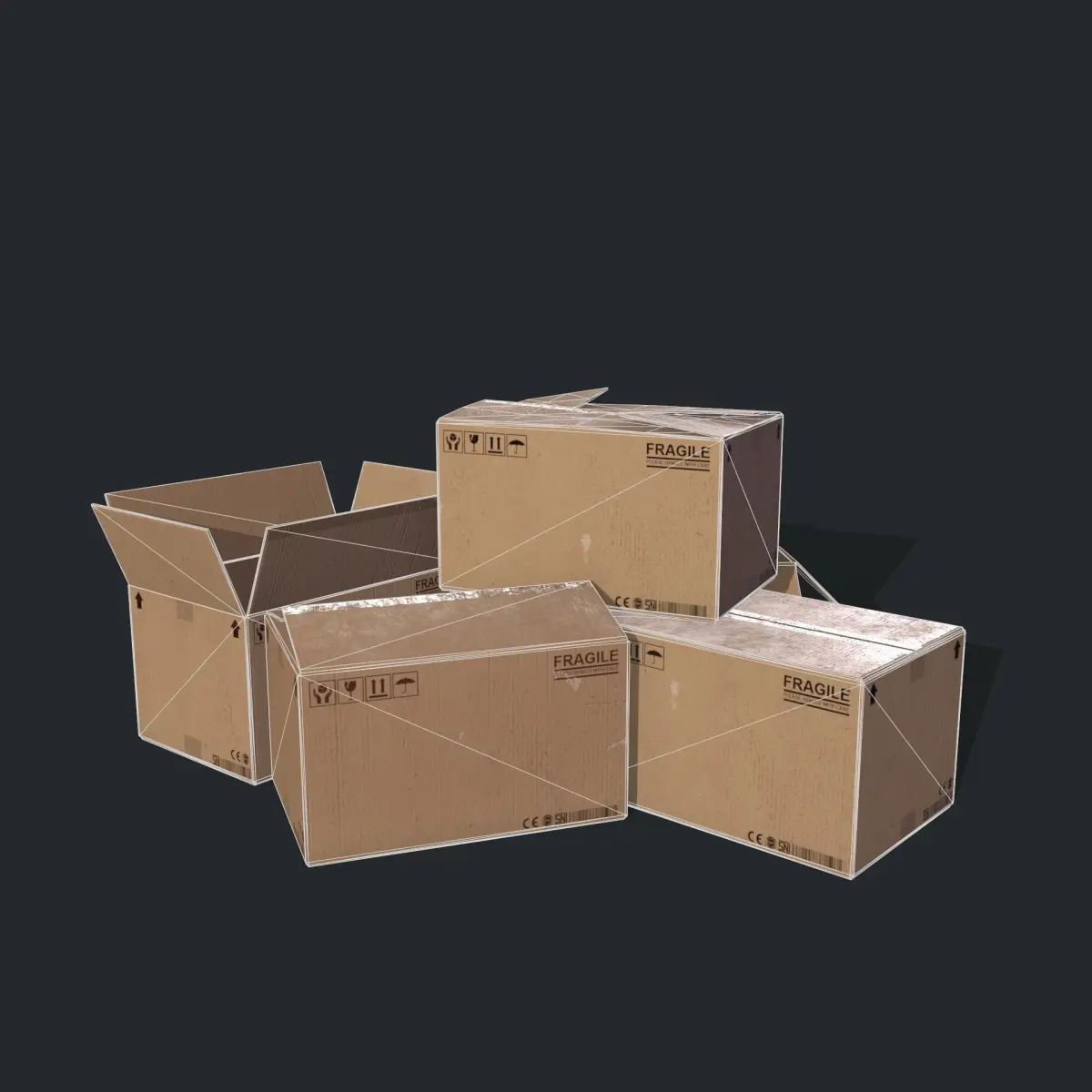 3D Low Poly game ready model of cardboard box. Consist of 5 different meshes with 5 different texture sets (Box 1, Box 2, Box 3, Box 4, Box 5). Model correctly scaled for an accurate representation of the original object in real world.