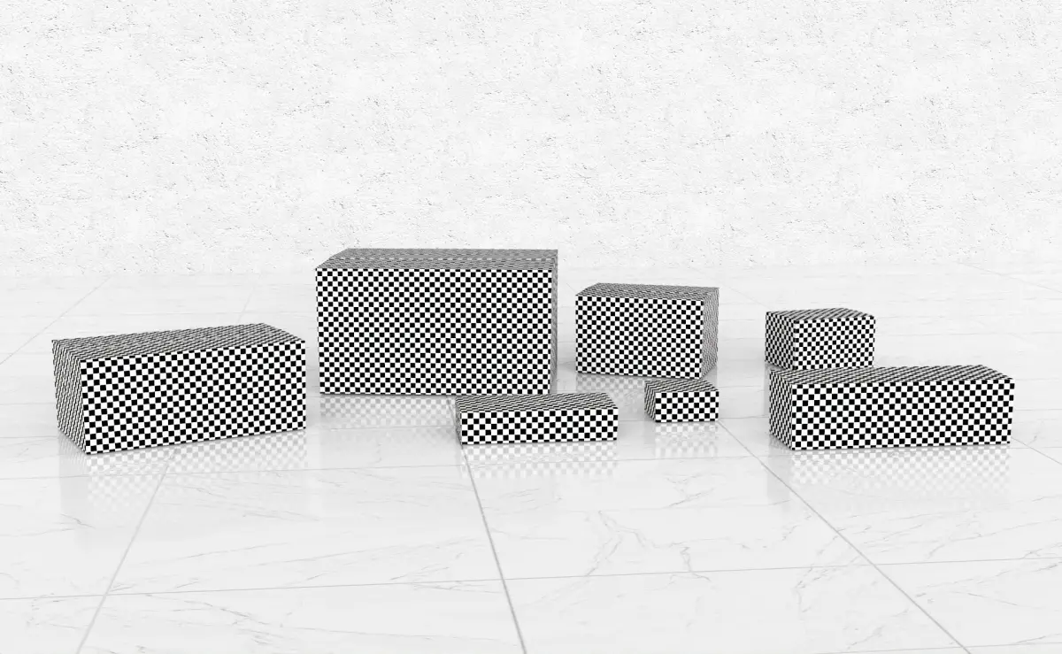 - There are 7 different size cardboard boxes;