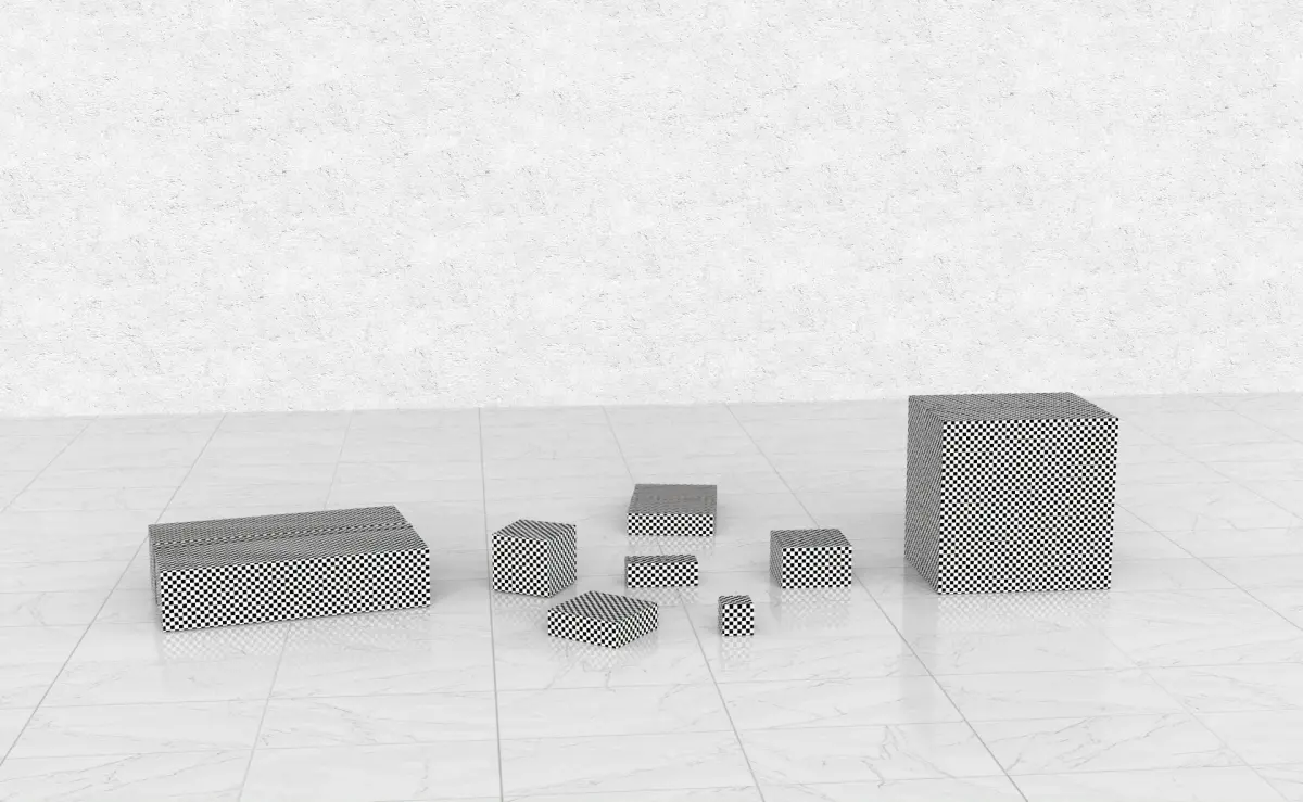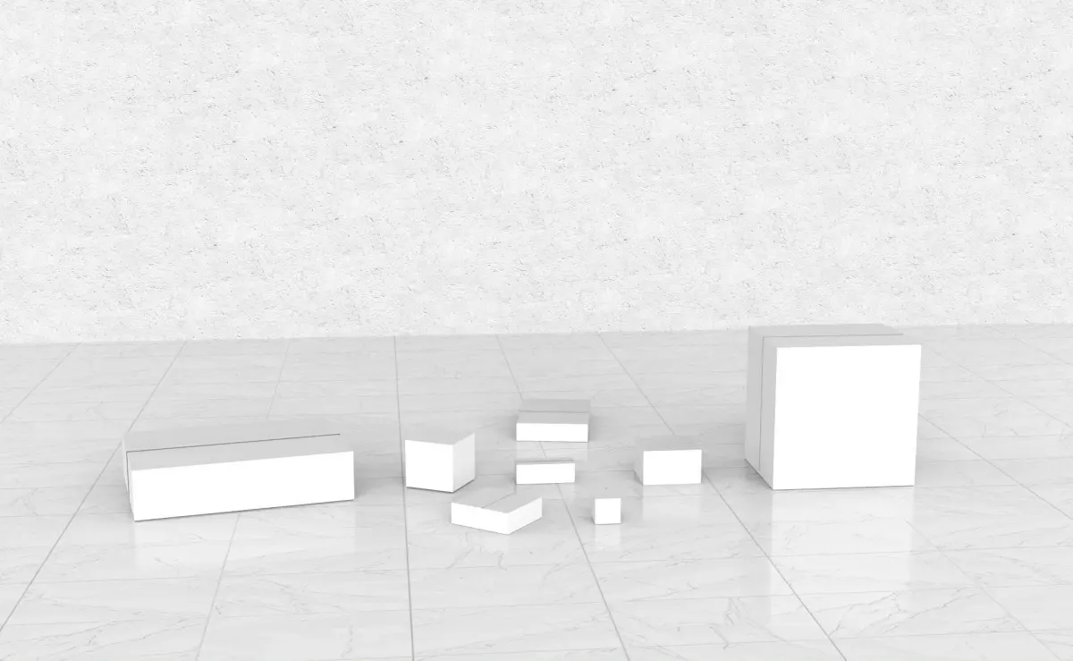- There are 8 different size cardboard boxes;