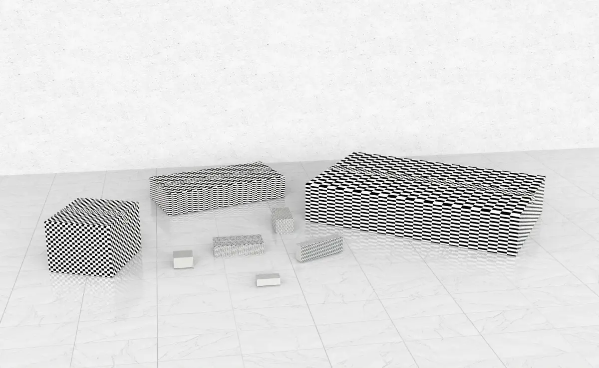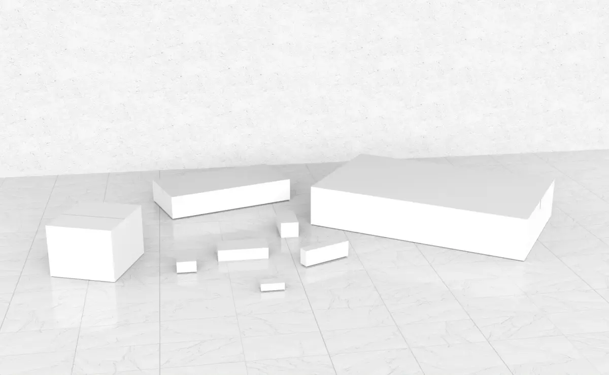 - There are 8 different size cardboard boxes;