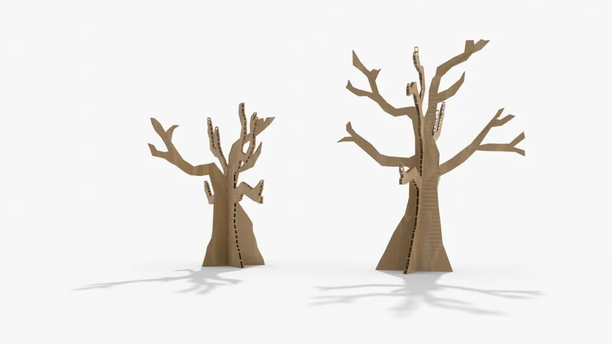 This is a low poly model made in blender about two simple cardboard trees. Fast rendering. Good for animations, games, cartoons or maquette scenes and close up shots. It is created in Blender and exported in DAE, FBX and OBJ formats. The units used are cm. The object has a clean and optimized topology for maximum polygon efficiency. The blender file has the textures packed, the textures are also in a separate zip file, it should be downloaded sepparatly and apllied in the application used.The beautiful cardboard textures are from texturecan.com.