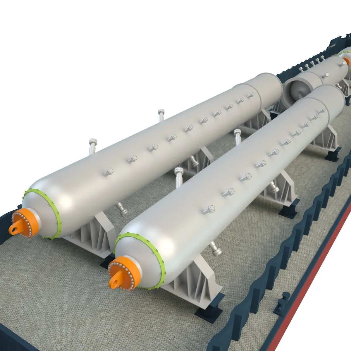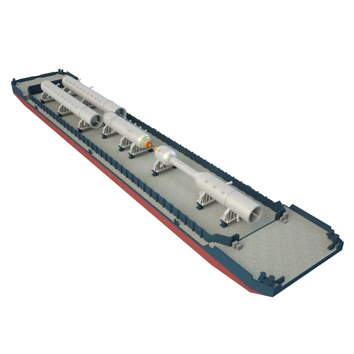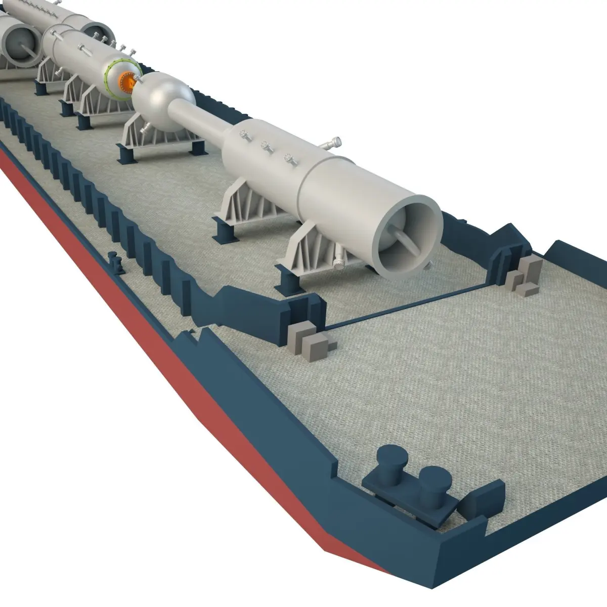 Cargo barges for the transportation of equipment for oil refinery.