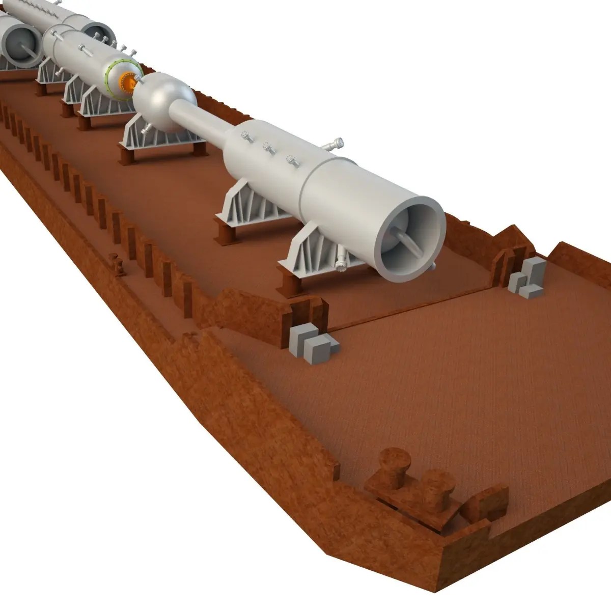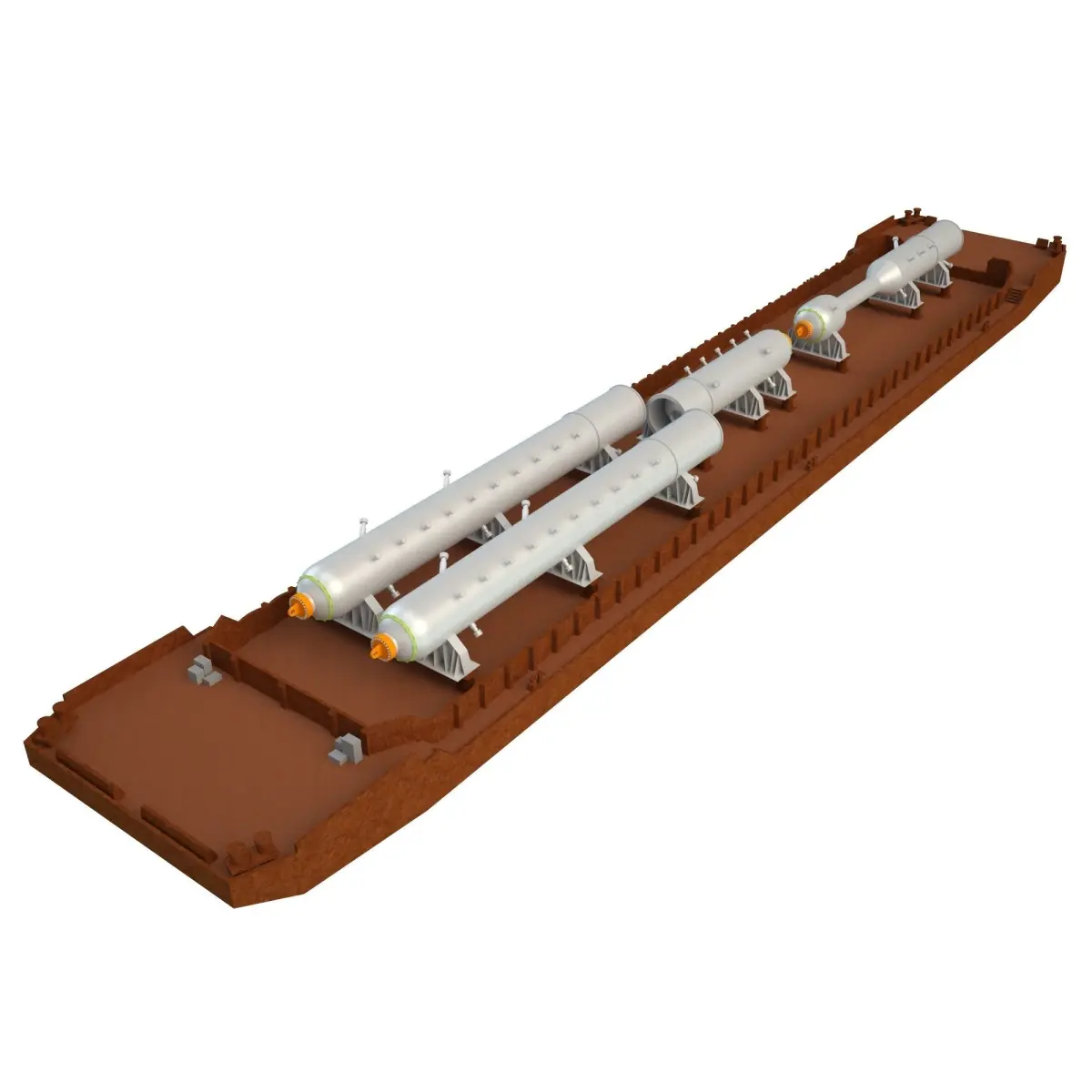 Cargo barges for the transportation of equipment for oil refinery rusty.
