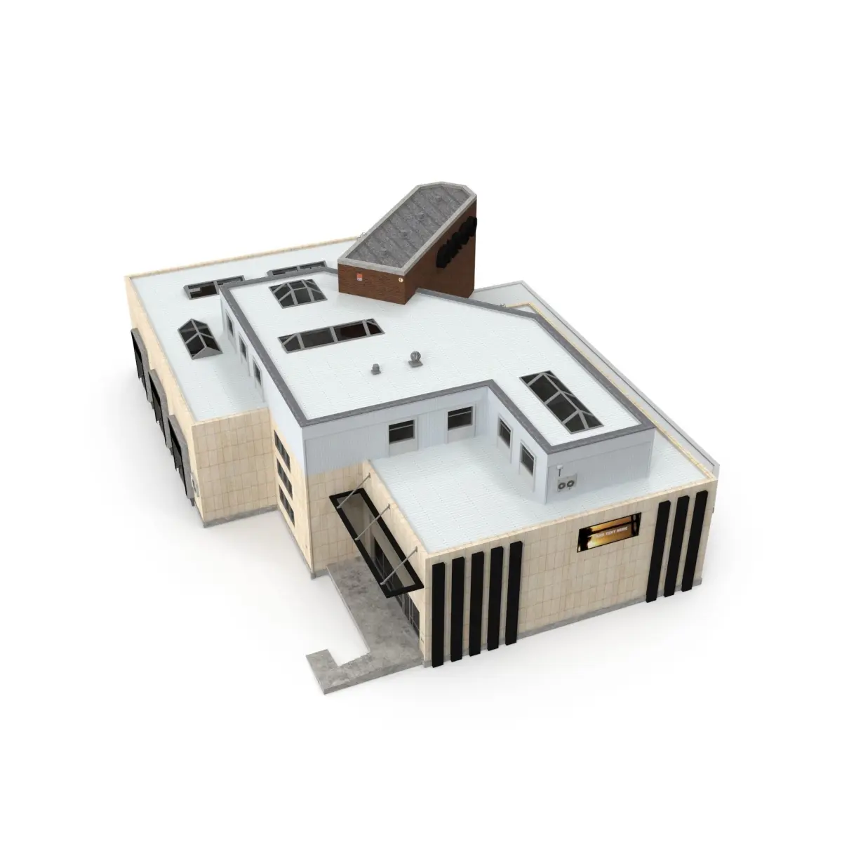 A 3d model of Cargo Magazine Building with Interior wall and stairs.Product's features: - High Resolution of textures. Vent pack: 1920x1344 Old Metal: 1024x1024 seamless Light Metal Wall: 2048x2048 seamless Roof Metal: 2048x2048 seamless Marble 2048x2048 seamless Door Metal: 1024x1024 seamless Concrete: 2048x2048 seamless Brick: 2048x2048 seamless Roof: 2048x2048 seamless Signs: 2048x2048 Stripe: 1024x119- Originally created with 3ds Max 2014- Unit system is set to centimeter.- Model is built to real-world scale