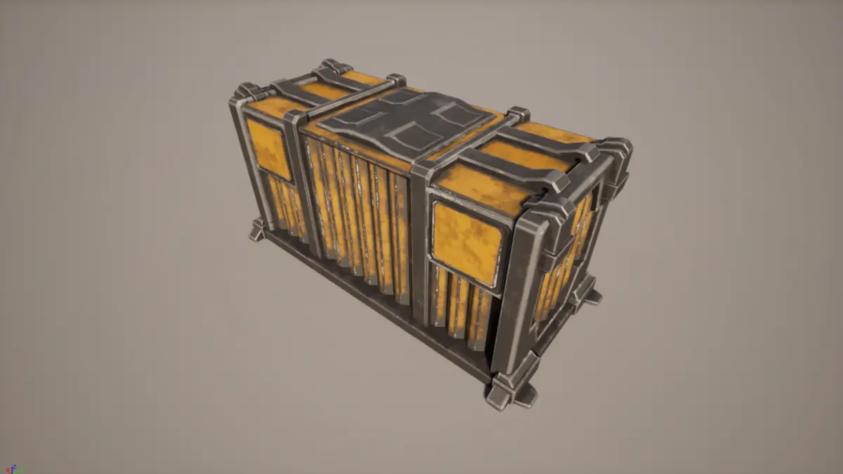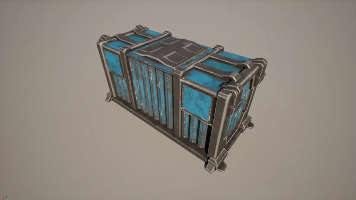 High-quality futuristic storage container perfect for sci-fi games, animations, and visualizations. This industrial-grade container features a robust metallic frame with reinforced corners and distinctive colored panels.