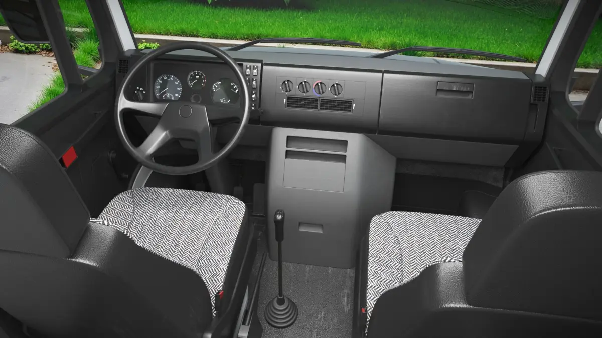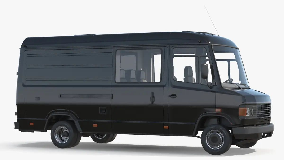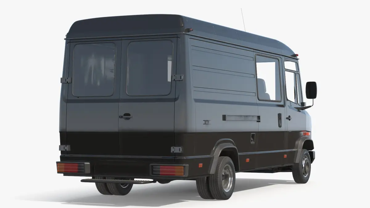 This model captures the essence of a vintage van, featuring a boxy shape, wide side panels, and a distinct front grille. The vehicle is characterized by its robust design, spacious interior, and nostalgic aesthetic.