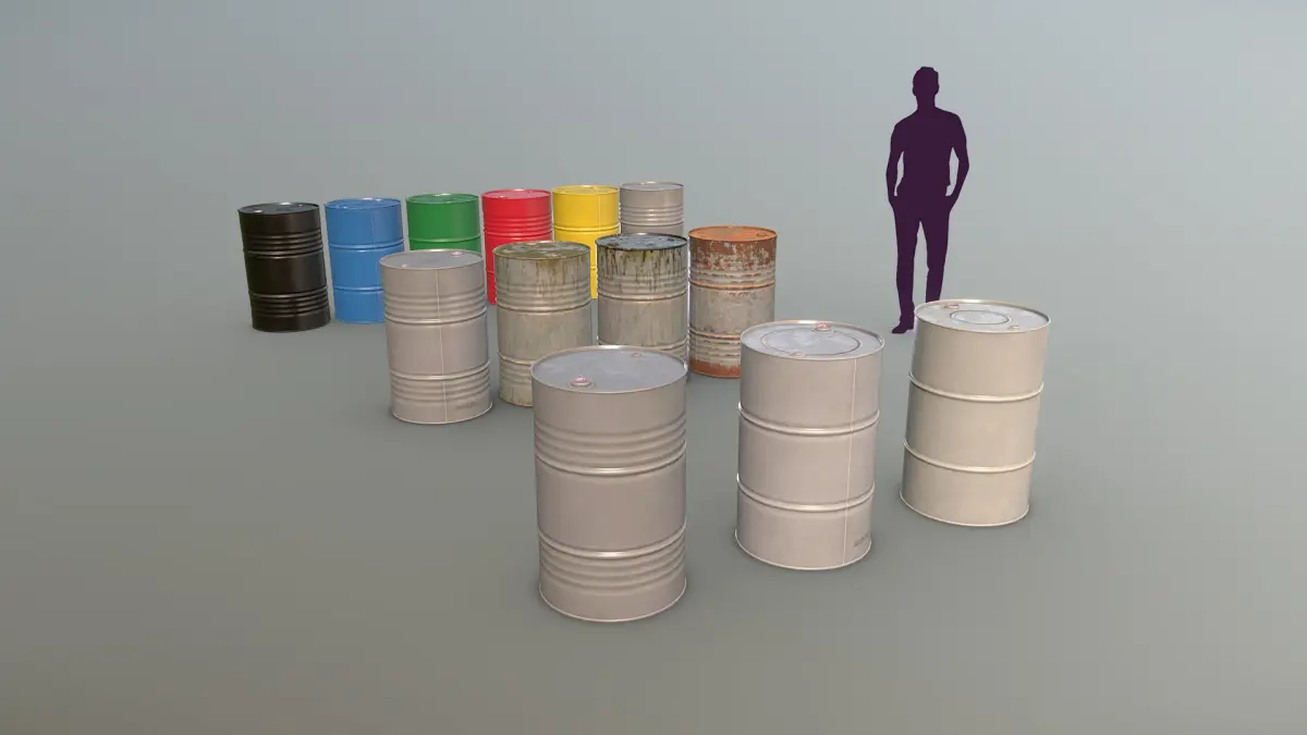 Low-poly 3D model Cargo Iron Barrels with LODs