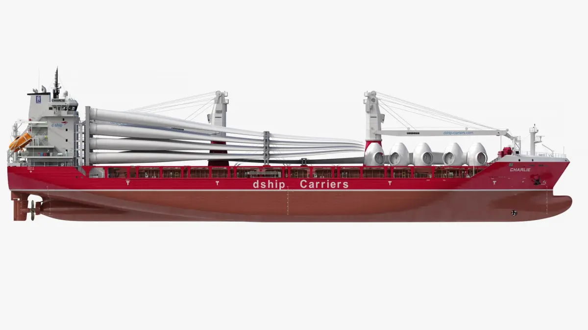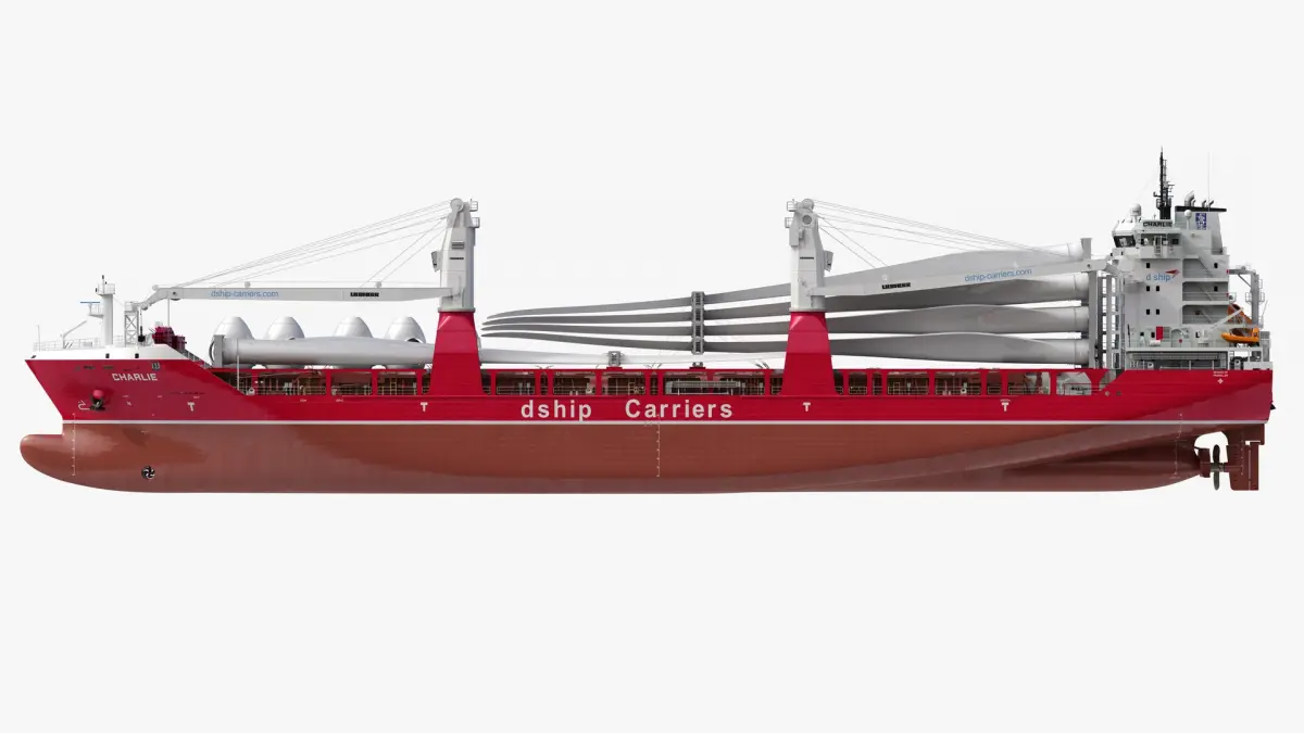 High detailed and realistic 3d model of Cargo Ship Charlie with Wind turbine.