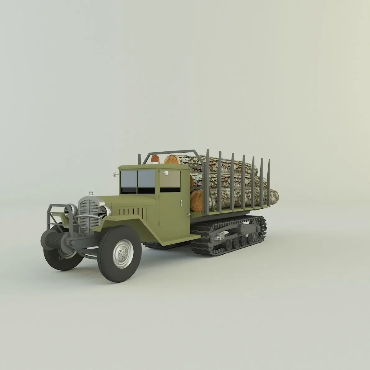 Cargo tracked timber truck. 3ds max was created in 2015. vray 3.00 rendered. There is no render scene. there is material. It has different formats. (3ds, fbx,obj) I have 3ds max file. no animation.