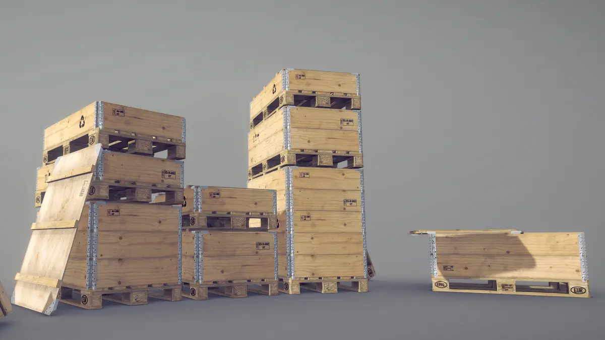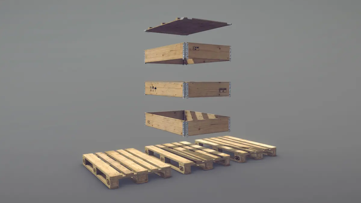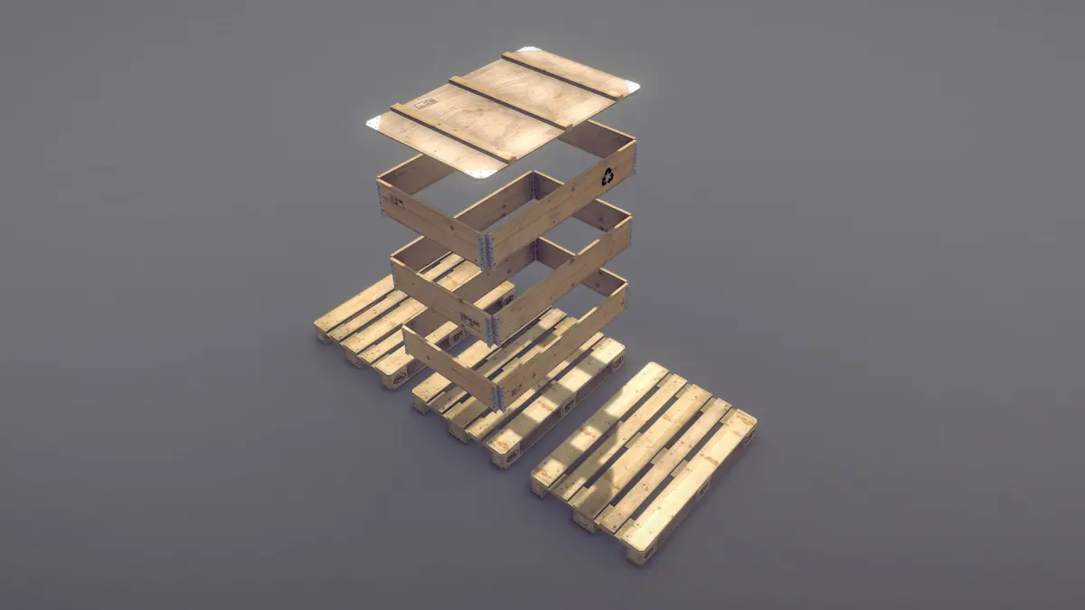 Low-poly 3D model Cargo Wood Pallets Collars Cover EUR EPAL with LODs