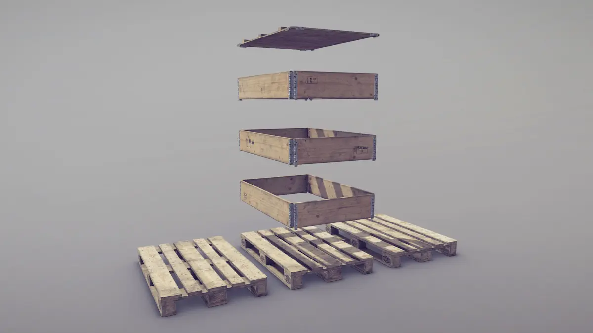 Low-poly 3D model Cargo Wood Pallets Collars Cover EUR EPAL with LODs