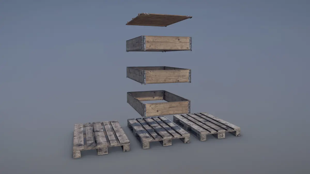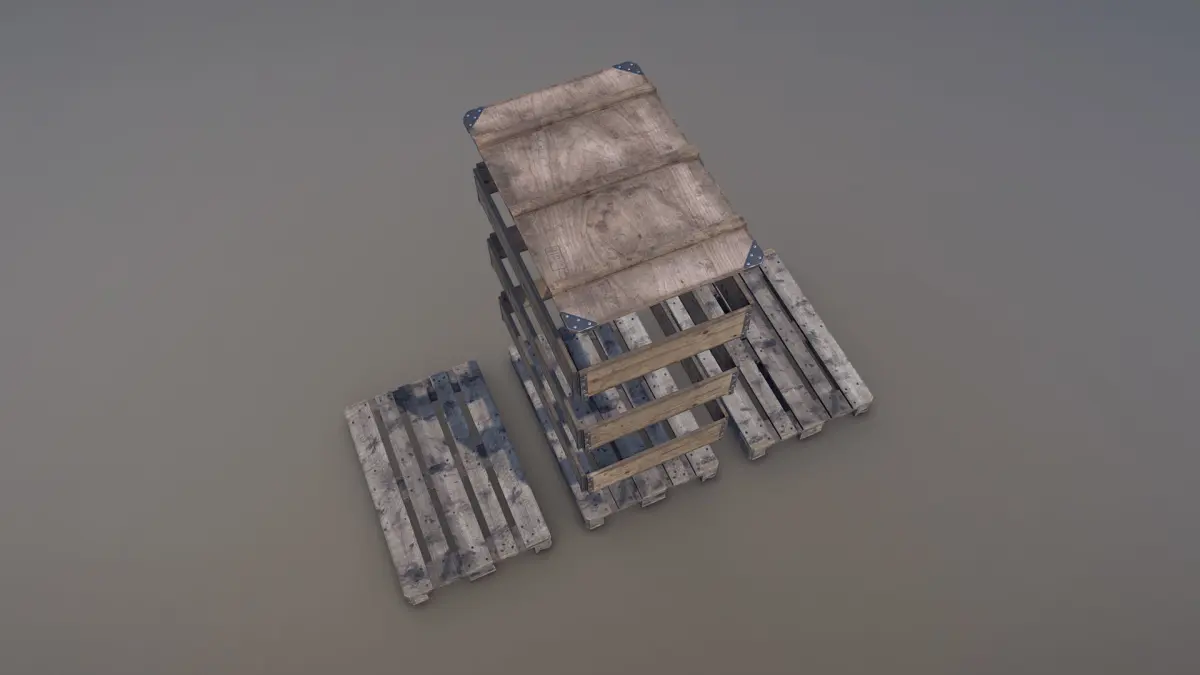 Low-poly 3D model Cargo Wood Pallets Collars Cover EUR EPAL with LODs