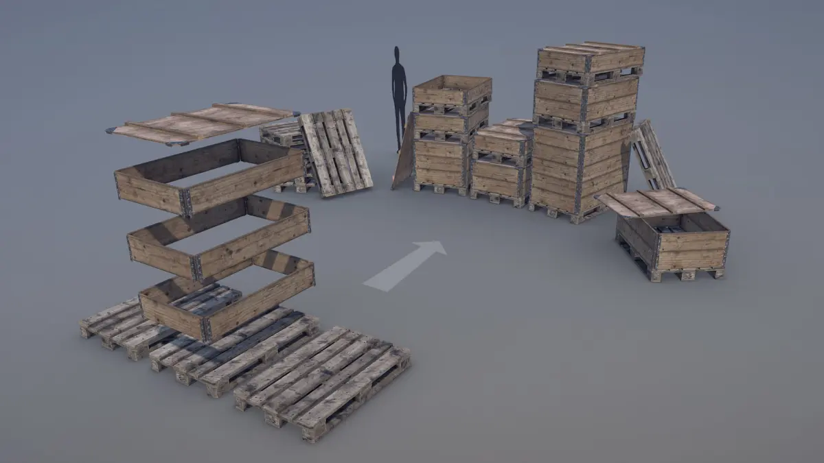 - (three variations for Pallets) + (three variations for Pallet Collars) + (Cover) (size 1200mm - 800mm - 145mm)