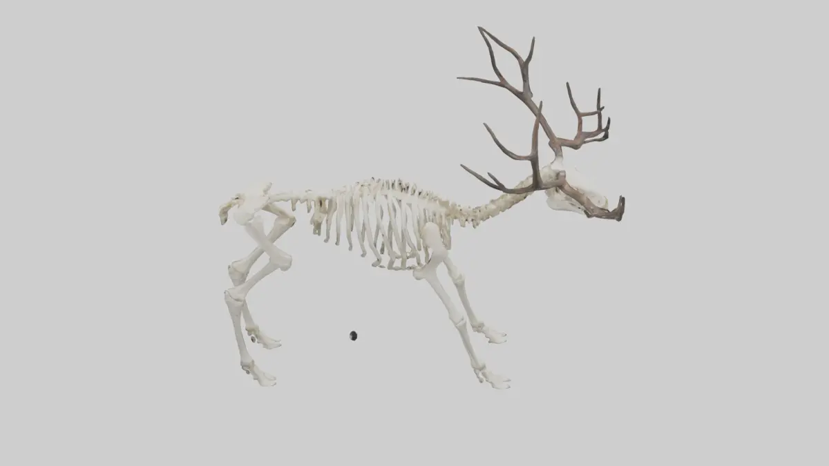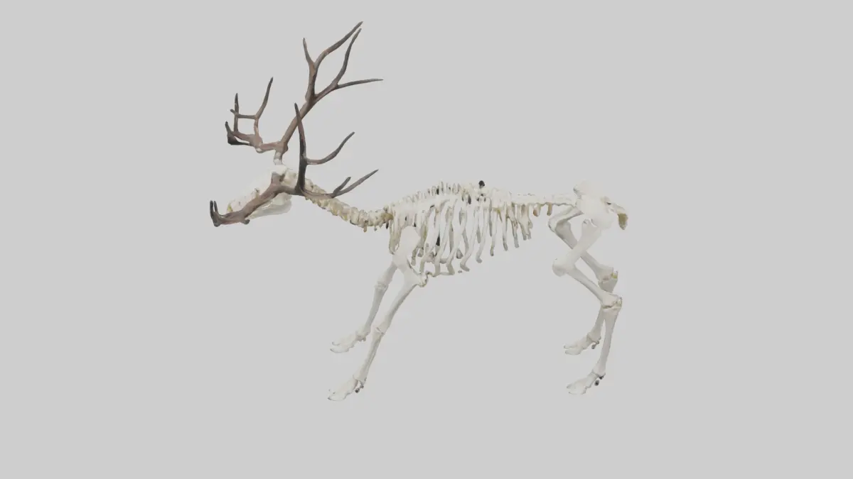 Keywords: Caribou skeleton, caribou, reindeer, skeleton, bone, animal skeleton, deer, mammal, zoology, veterinary, 3D model, anatomy, scientific, educational.
