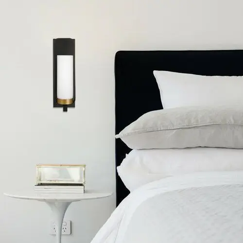 Overall14.97'' H x 3.89'' W x 10.55'' DShade9.06'' H x 2.99'' W x 0.99'' DBack Plate14.97'' H x 3.89'' W x 0.99'' DOverall Weight4.07Wall sconces are a great way to add a beautiful light to any room. This 1-Light Wall Sconce brings a luxuriously industrial element to your space and complements all decor styles. The dark bronze mixed with gold interior accents elevates this wall sconce from industrial to luxury. The white glass shade emits a beautifully soft light perfect for any room. Includes all mounting hardware for quick and easy installation and requires one E12/candelabra base B-type 60-watt bulb (sold separately).FeaturesIndustrial Luxe Design: a cutout metal design and dark bronze finish brings out the industrial while a gold interior and white glass shade elevate this Wall Sconce to luxury making this a true industrial luxe designFrosted Glass Shade: the frosted glass shades emit warm, diffused light perfect for making your space comfortable and relaxingDimmable: fully dimmable with compatible dimmer switch to create the perfect atmosphere (dimmer switch sold separately)EASY INSTALL: includes all mounting hardware for quick and easy installationBULB REQUIREMENTS: 1x E12/Candelabra Base B-Type 60W Bulb (sold separately)Product DetailsDimmable: YesPower Source: HardwiredDry, Damp or Wet Location Listed: DampShade IncludedShade Material: Glass