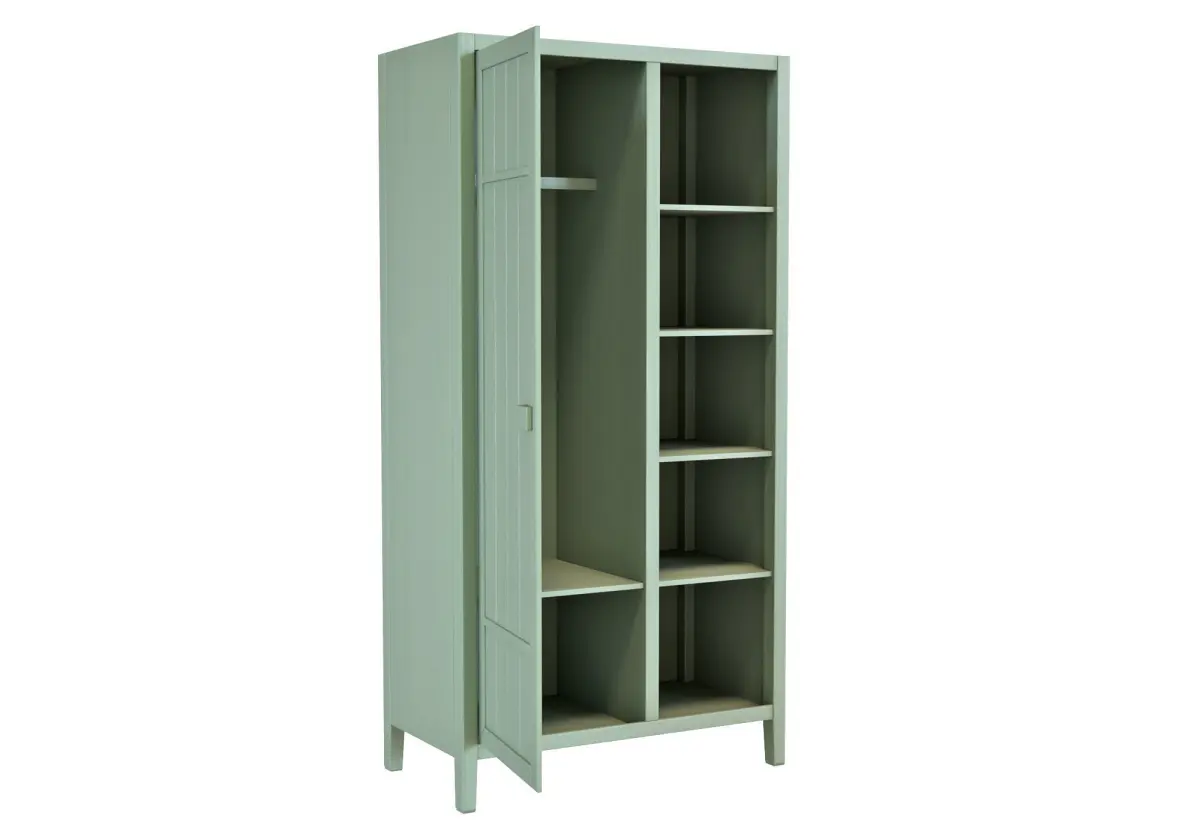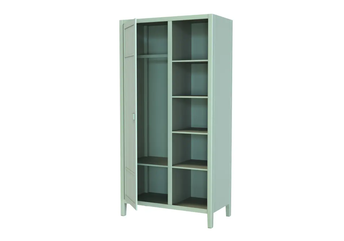 Ultra-practical and not bulky. It will fit both the hallway and the bedroom.Inside there are 1 hanger bar and 1 shelf, 4 shelves on the side to maximize space.