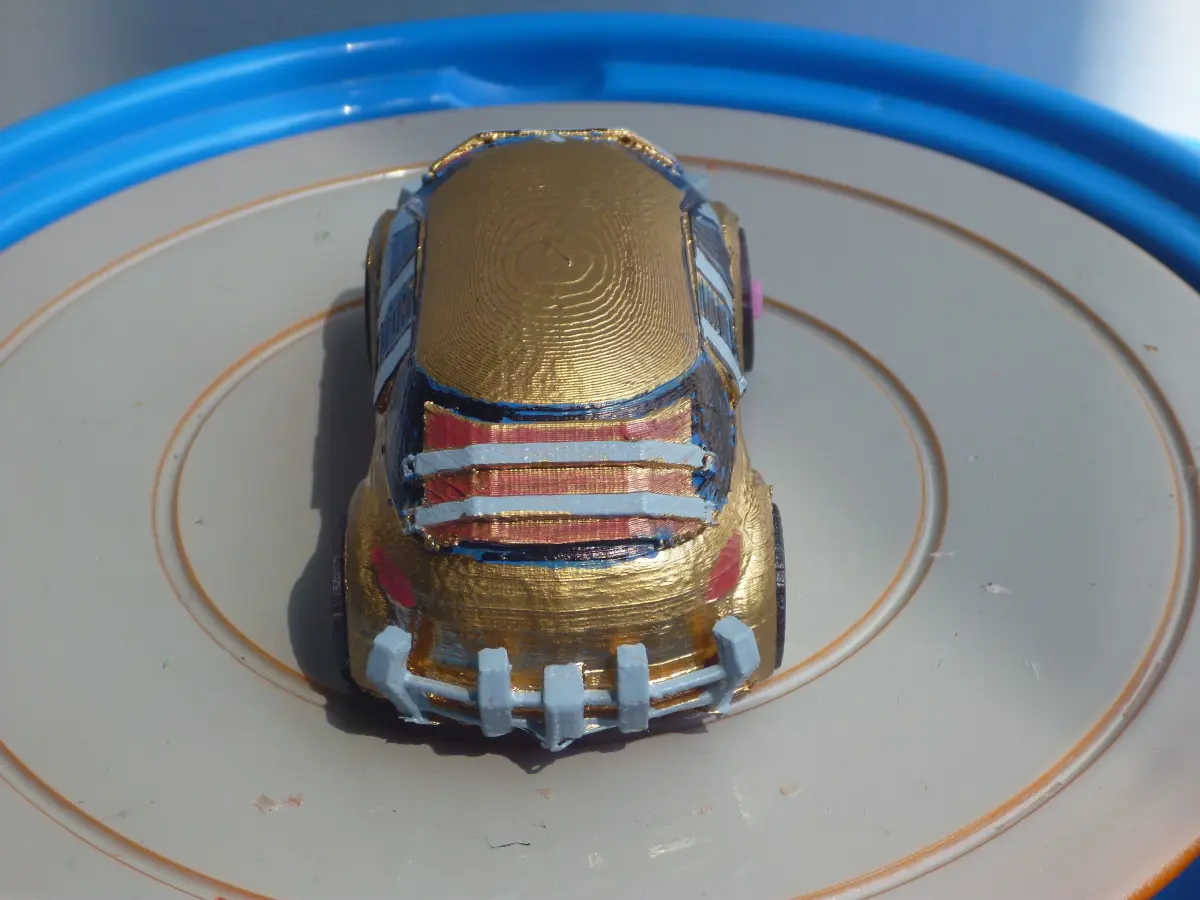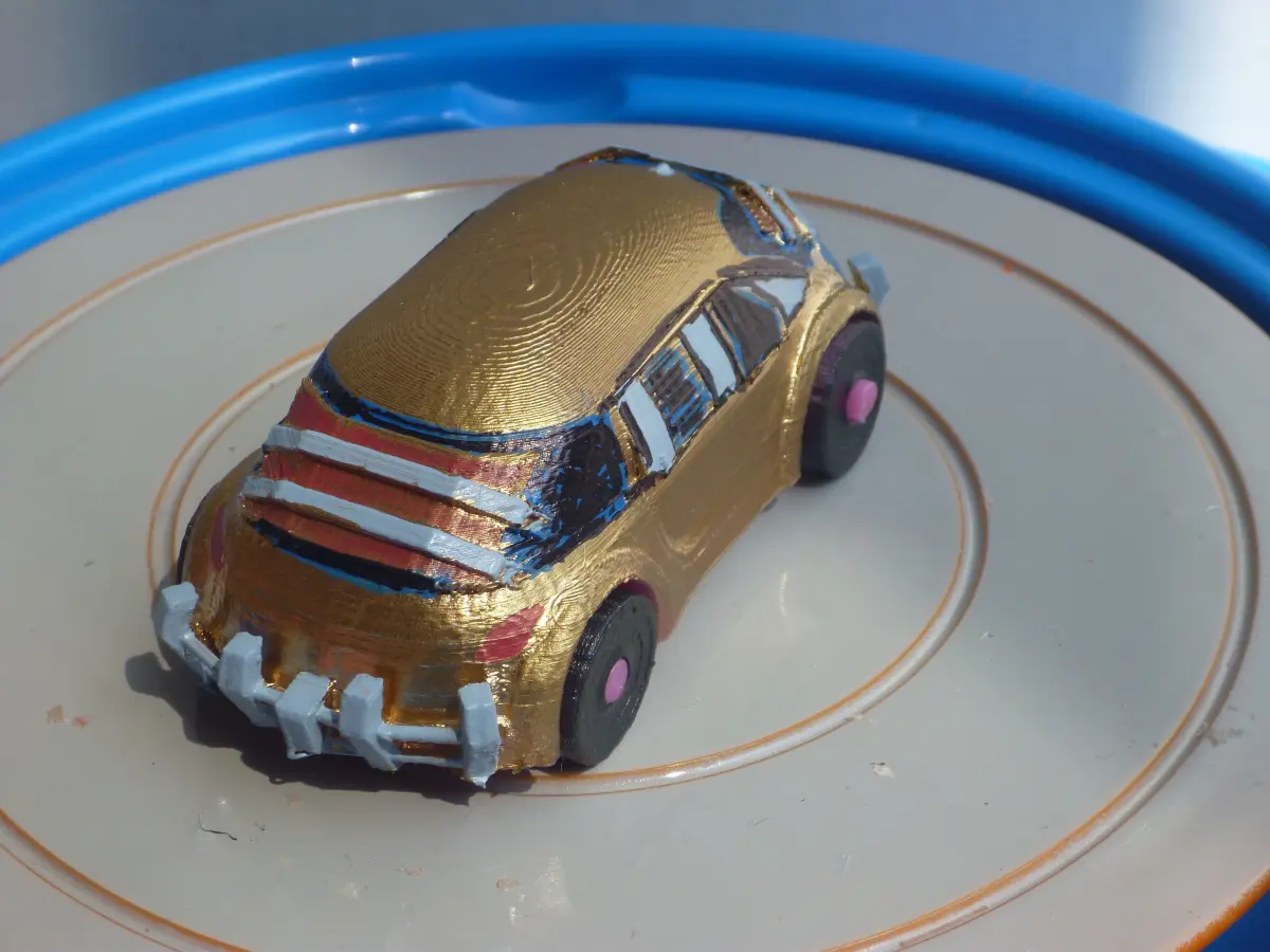 Blender, STL and Gcode files available. This car has all the files you need to simply print it out as is or make little modifications in blender to enhance it yourself. Depending on how good your printer is you can print it as a wholeor separate parts and then assemble it after painting. Wheels and axle should be carefully printed and resized correctly. You will need glue to assemble the wheels on this model unless you are able to print the full car with wheelsincluded.