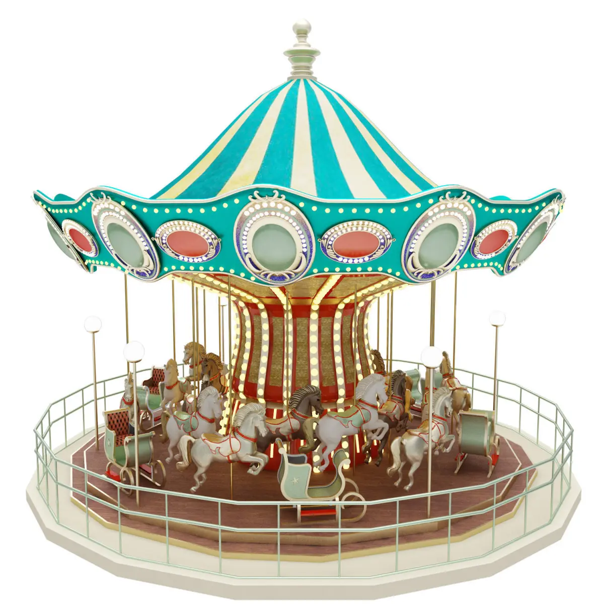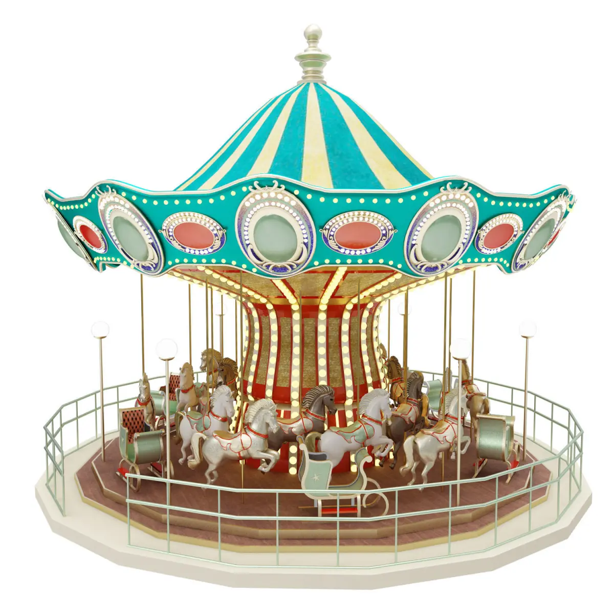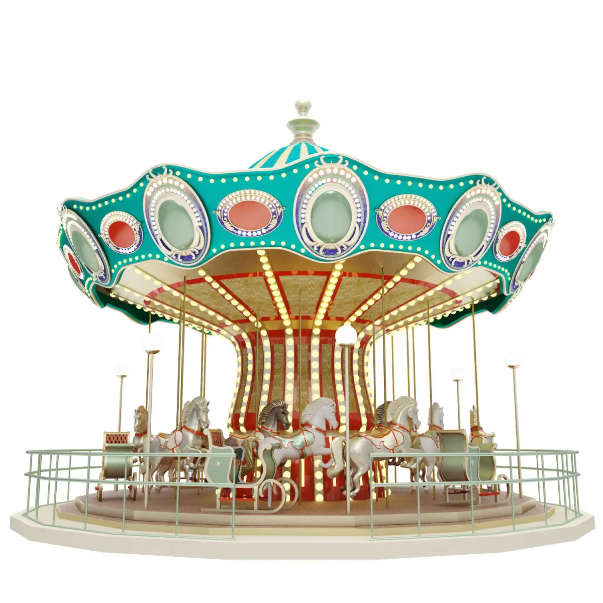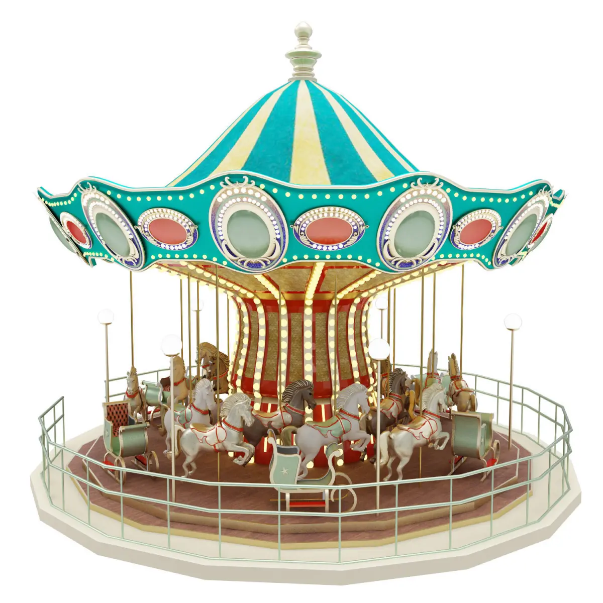 Carousel 3ds max vray 2021-2018 modelFiles include 2021-2018 3ds max vray, fbx, blender 2.82, obj, dxf, printable stl , renders and texturesThe model has separate stl files for 3d printing in 40cm dimensions.