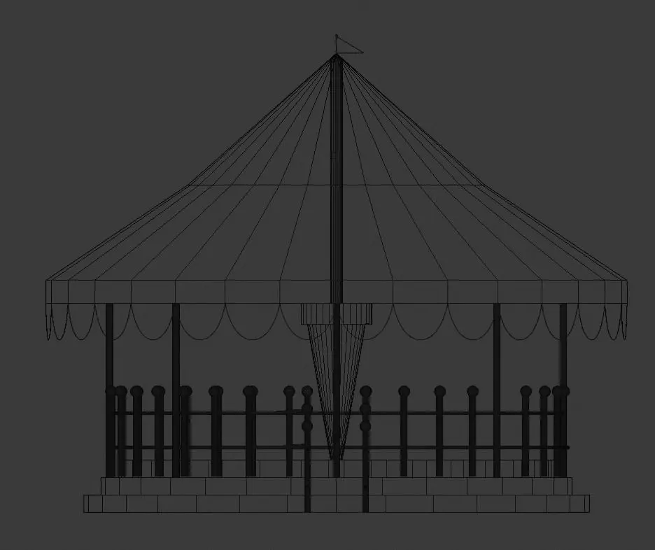 An animated carousel without the horses inside. The textures are from https://cc0textures.com/ . Please consider donating to support their work. [Early steps in Blender] Used in an Unreal Engine 4 project for the university.