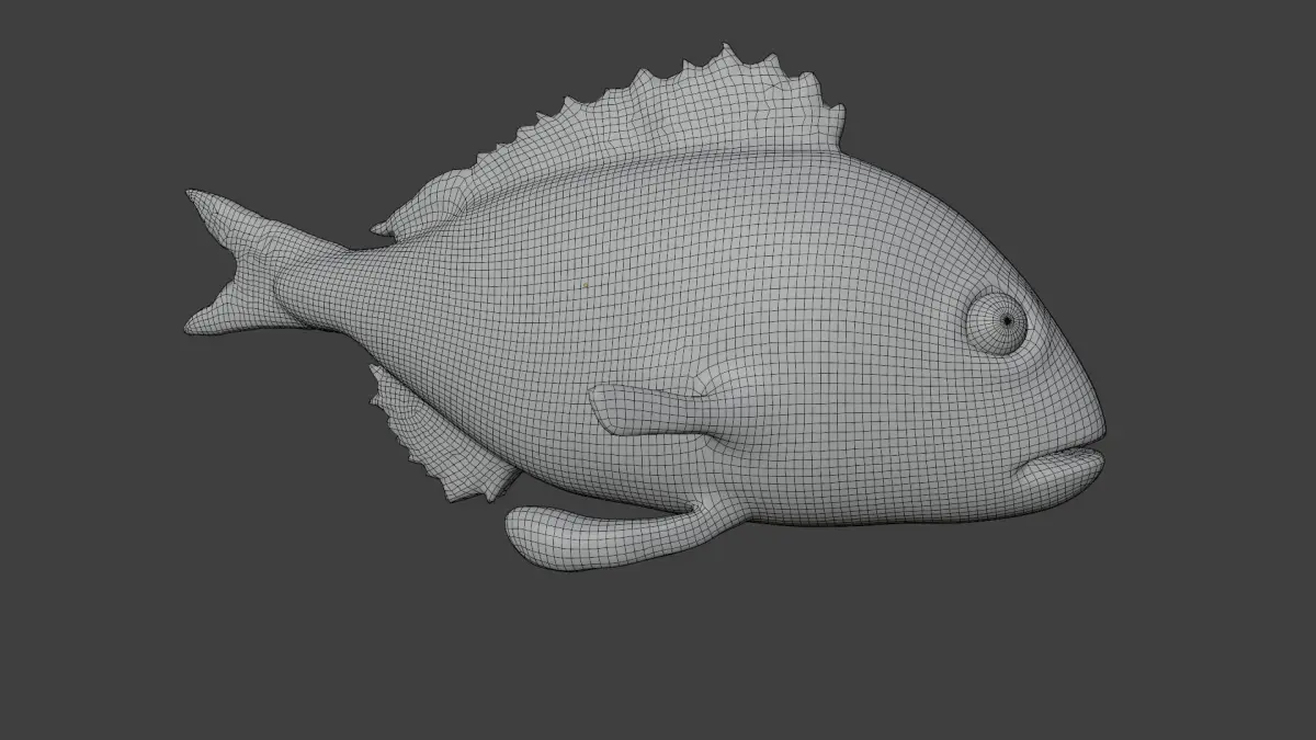 lowpoly carp fish with embedded textures animated for 250 frames. The texture size is 4096x4096. The rigging is done using the default rigify system within blender.