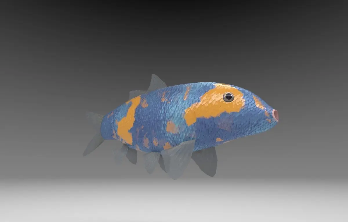 A realistic japanese koi fish, animated, that swims and follows a path(see image).