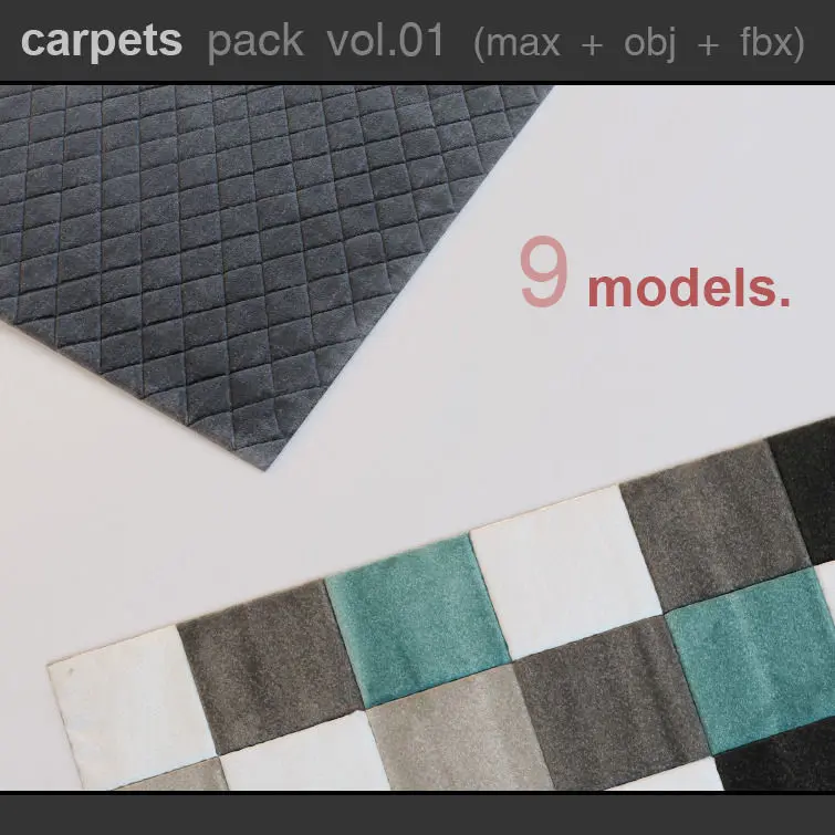 High detailed photorealistic carpets.All textures included.Formats include:Max 2011Max 2014OBJFBX