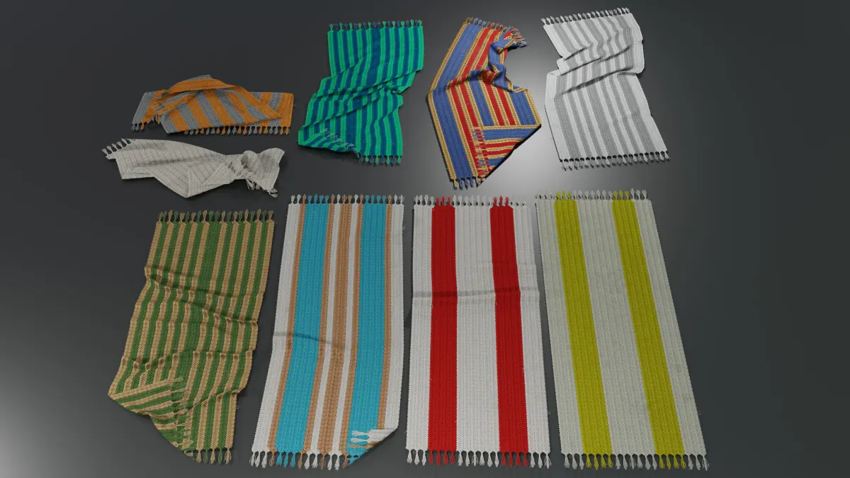 - 9 optimized carpet models from 1K to 11K triangles each (flat has only 2 triangles)