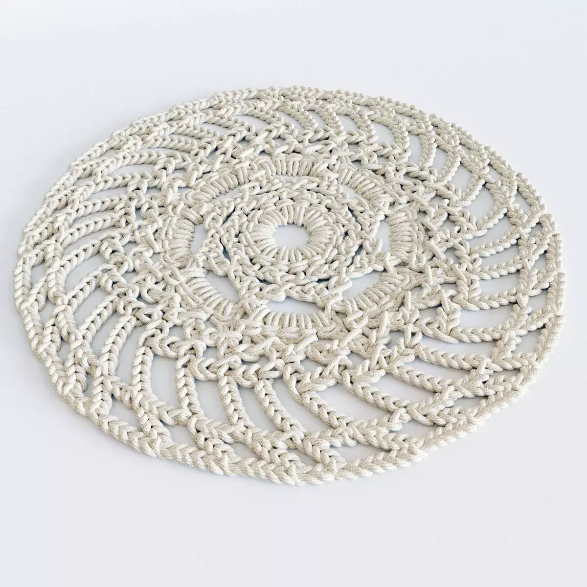 Crochet round mat of twine.