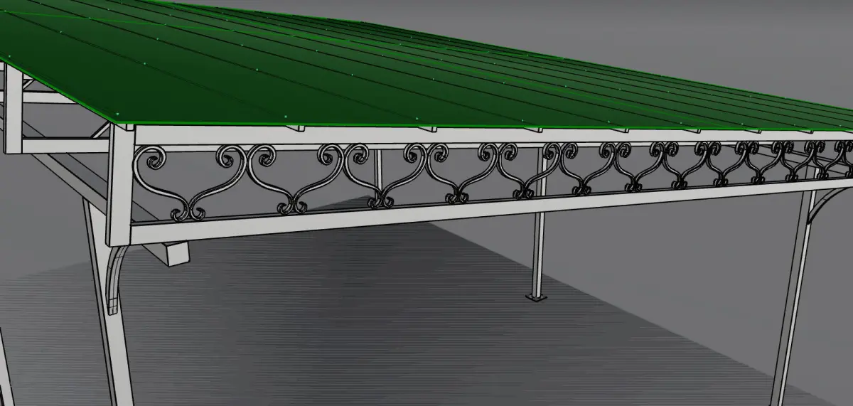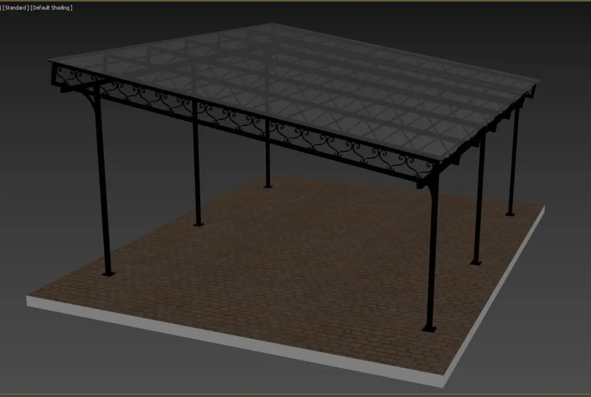 3D model Carport for car . Сarport format 3Ds Max (V-Ray), obj, 3dm. Made in real sizes (mm). Scheme included. Also included texture and materials. Polycarbonate in this model is a shader. (not geometry)