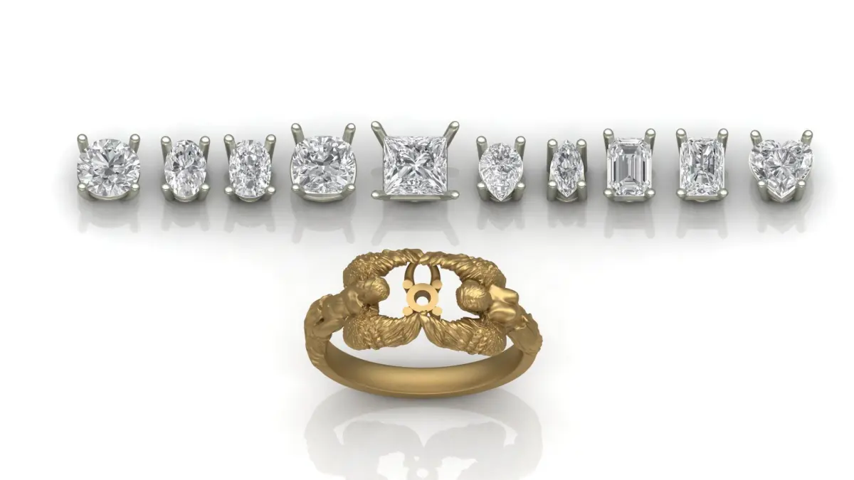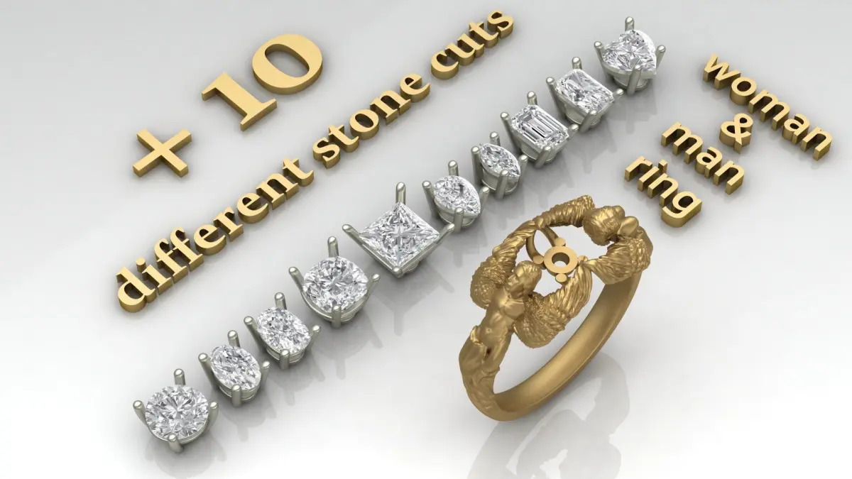 Carrera Woman and Man Lovers Ring Angel Wings-10 Stone Cuts Heads