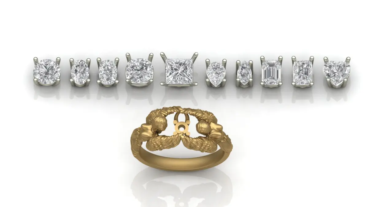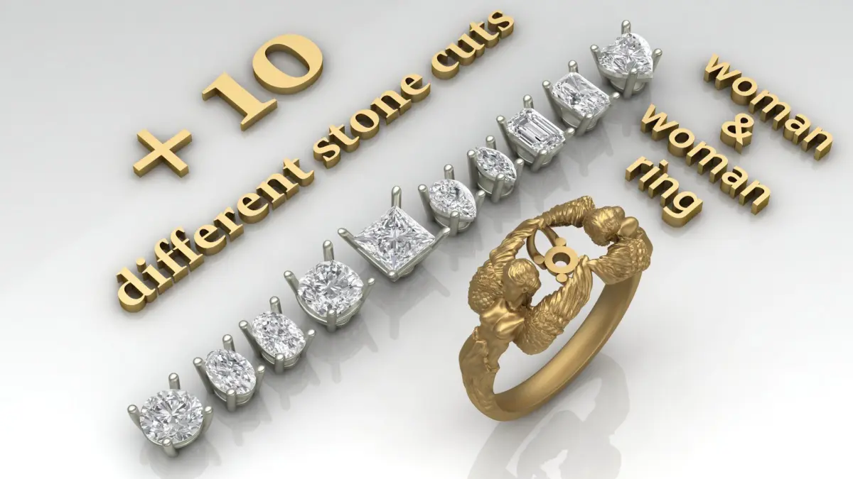 Carrera Woman and Woman Lovers Ring STL 3DM With 10 Stone Cuts Heads
