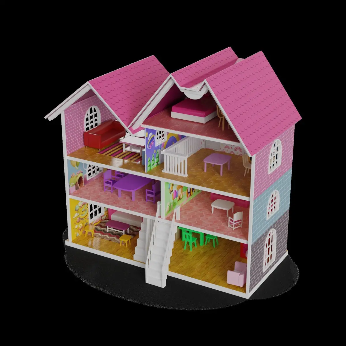 Dollhouse Playset: This dollhouse playset is a dream come true for little ones who love playing house. The packaging is a large cardboard box with pictures of the dollhouse and furniture on all sides. Inside, you'll find a three-story dollhouse with various rooms and furniture pieces. The dollhouse is made of sturdy plastic and features detailed decorations. The packaging includes a label with the text Dream Dollhouse and a graphic of a child playing with the dollhouse.