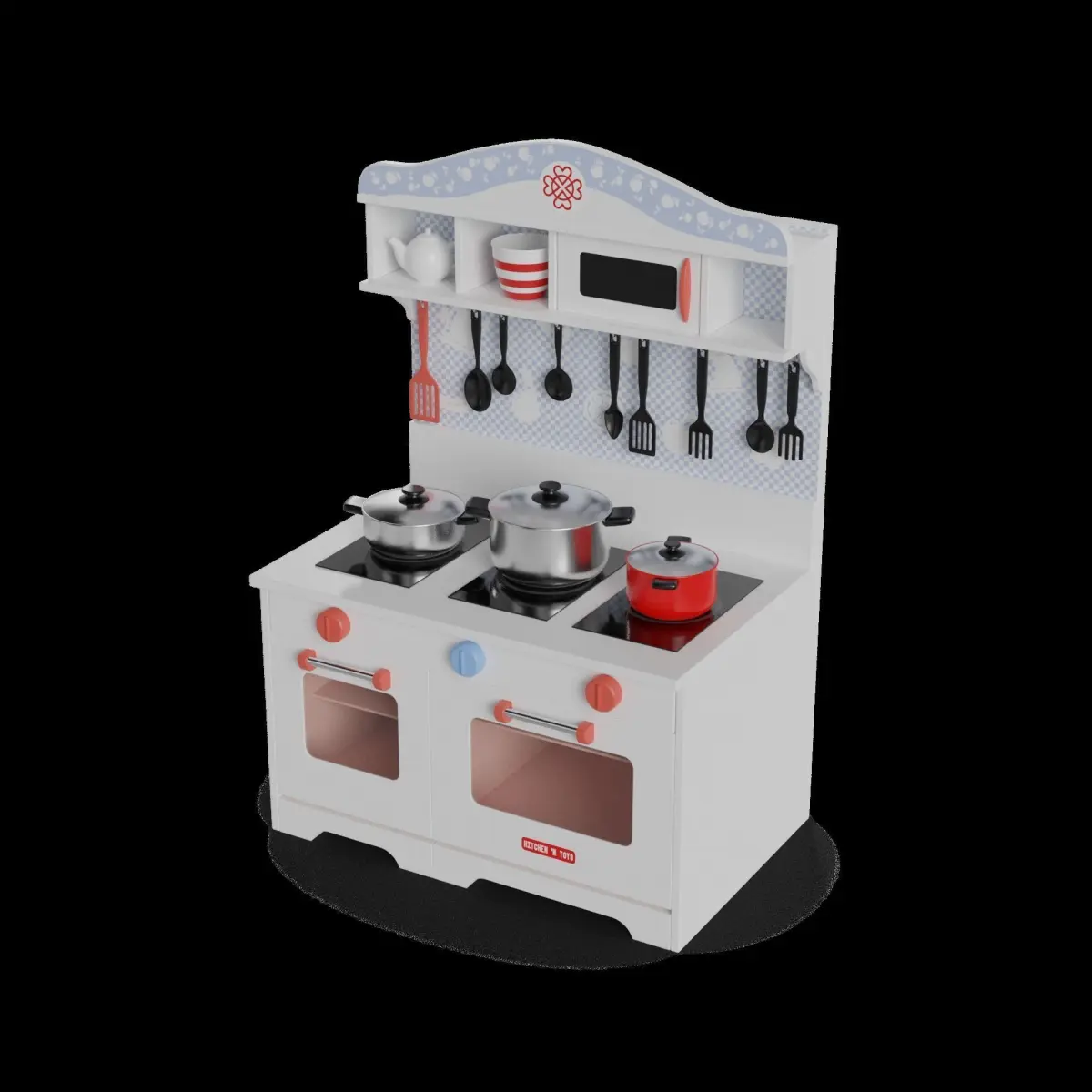 Play Kitchen Set: This play kitchen set is perfect for little chefs. The packaging is a large cardboard box with pictures of the kitchen set on all sides. Inside, you'll find a mini stove, sink, refrigerator, and various kitchen accessories. The kitchen set is made of durable plastic and features realistic details. The packaging includes a label with the text Little Chef's Kitchen and a graphic of a child cooking in the kitchen.