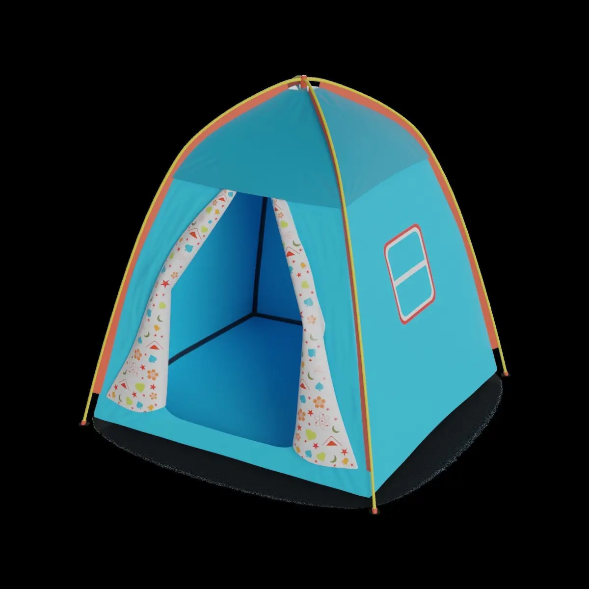 Play Tent: This play tent is perfect for little ones to have their own little hideaway. The packaging is a compact carrying bag with a handle. The tent is made of durable fabric and features a colorful design with windows and a door. The packaging includes a label with the text Adventure Hideout and a graphic of children playing inside the tent.