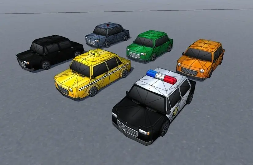 Taxi, Police, Detective, yellow car, green car and black car.easy to modify.simple low-poly meshes.hd textures.compatible for symbain mobiles , android, ios.easy to use in unity3d.