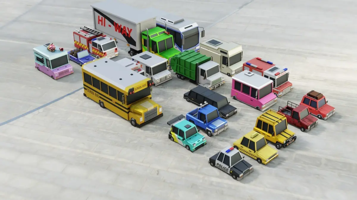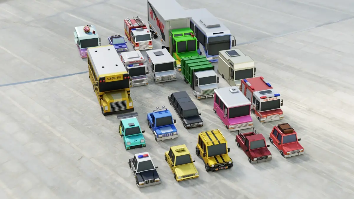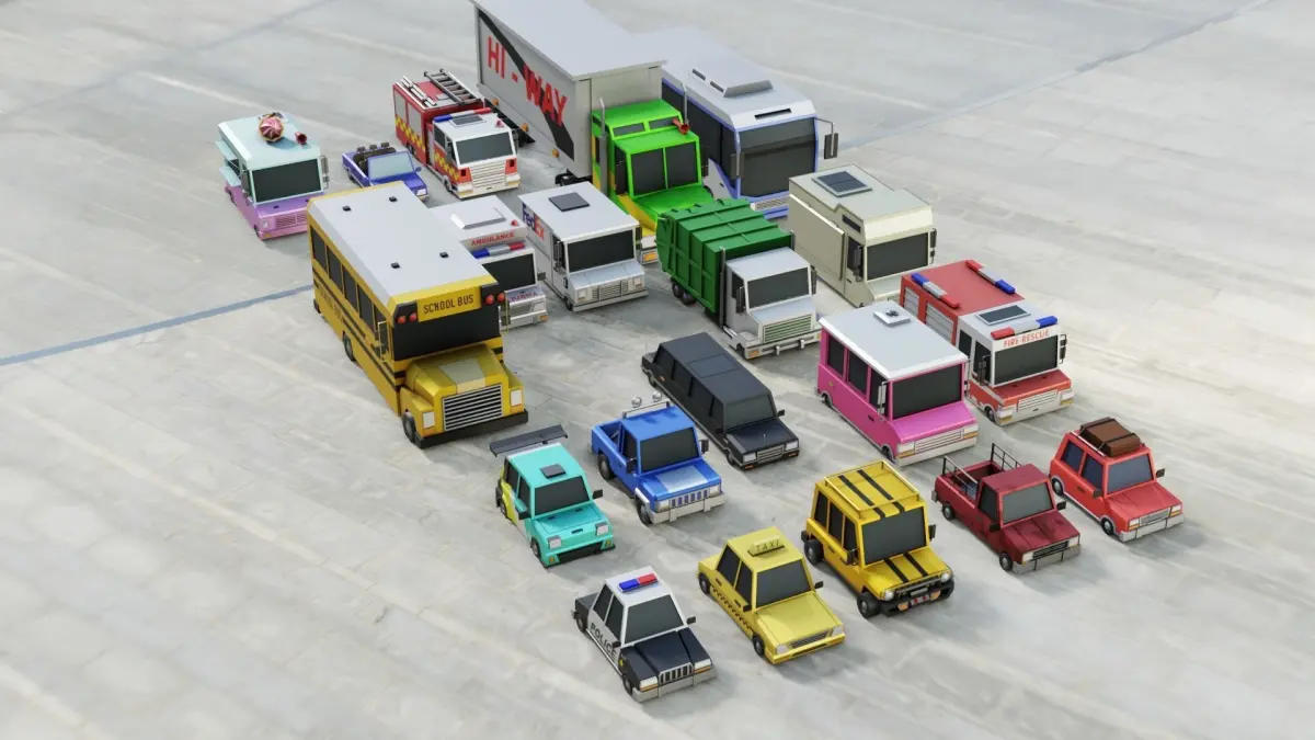 All 20 cars Triangles 46683 Faces 26634 Verts 26247